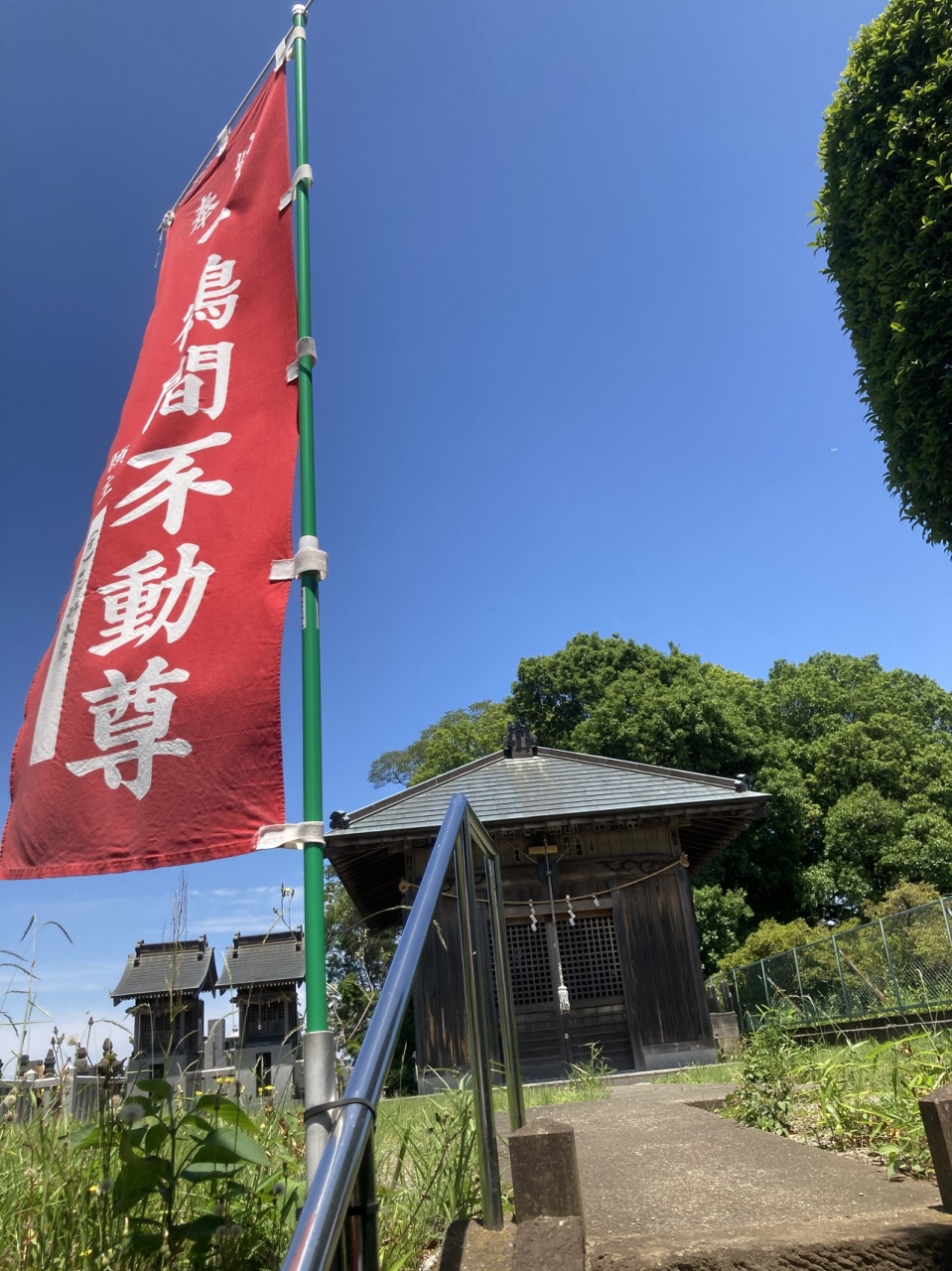 県道56号線から、すこし西側に寄ったところの高台にある不動尊です。