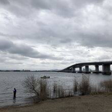 滋賀県にある日本最大の湖、琵琶湖にかかる琵琶湖大橋です。琵琶湖を東西に横断する事ができる橋で、観光客だけでなく、地元の人や運送関係の方も多く利用します。短い橋ですが、無料ではなくお金を払わないと渡る事ができません。