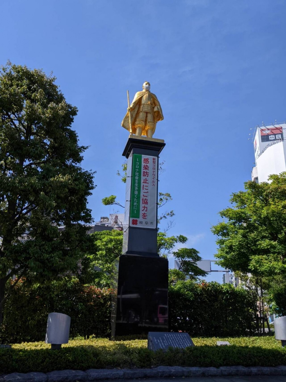 JR岐阜駅前にある綺麗に整備された広場です。広場には、岐阜がゆかりの地である織田信長の黄金像があり、金色に輝き、存在感がありました。また、広場の真ん中には噴水があり、子どもたちが楽しそうに遊んでいました。