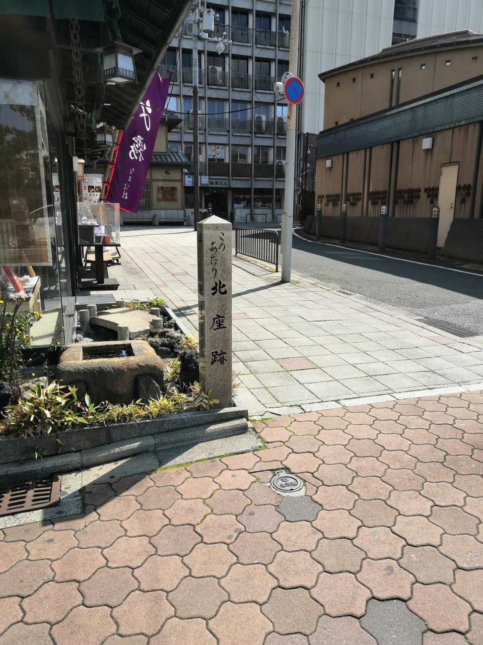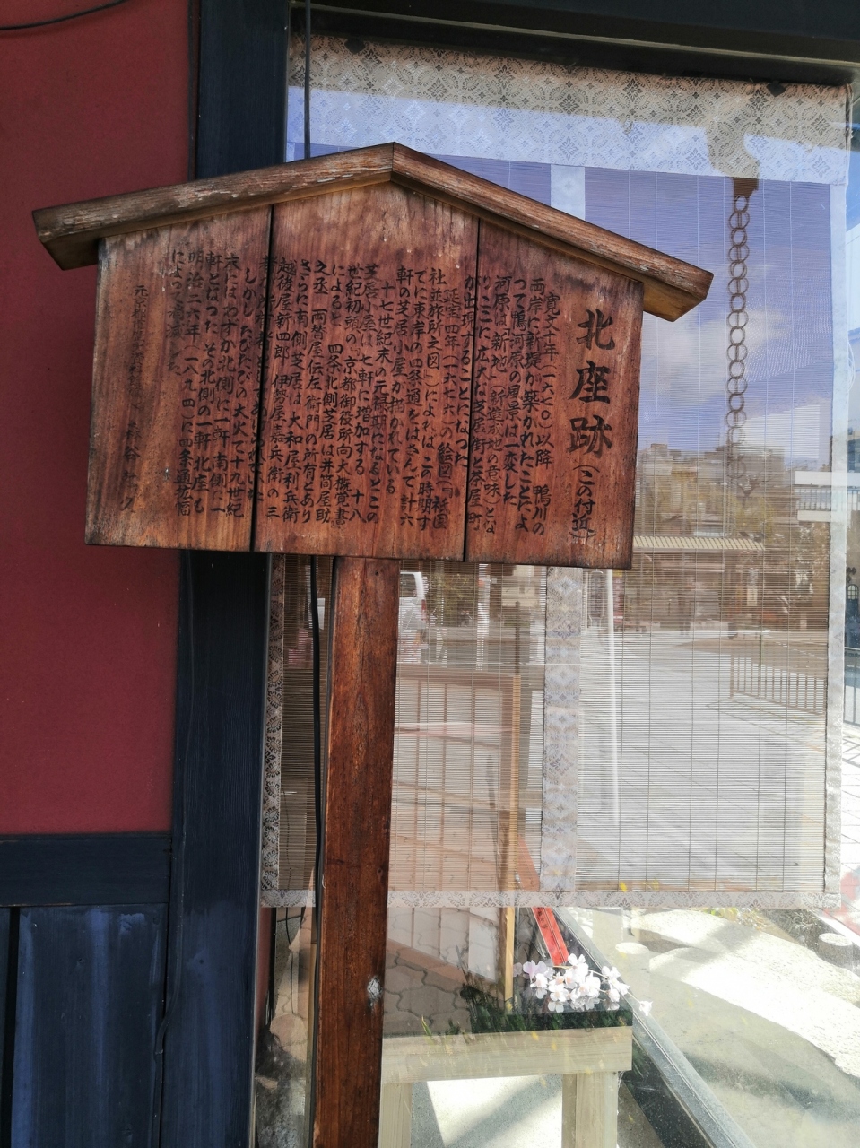 四条大橋から近いところにあります。四条河原での興行が許可された7か所の常設芝居小屋の一つです。跡地は北座ビルとして一階は井筒八ッ橋本舗の本店があるのですぐわかります。建物跡があるわけでもないので、それほど見ごたえはないです。