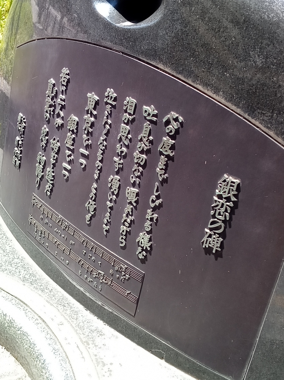 東京・銀座の『西銀座 (NISHIGINZA)』前の数寄屋橋公園に、1961年に発売された大ヒット歌謡曲、石原裕次郎と牧村旬子のデュエット曲『銀座の恋の物語』の碑があることに初めて気が付きました。