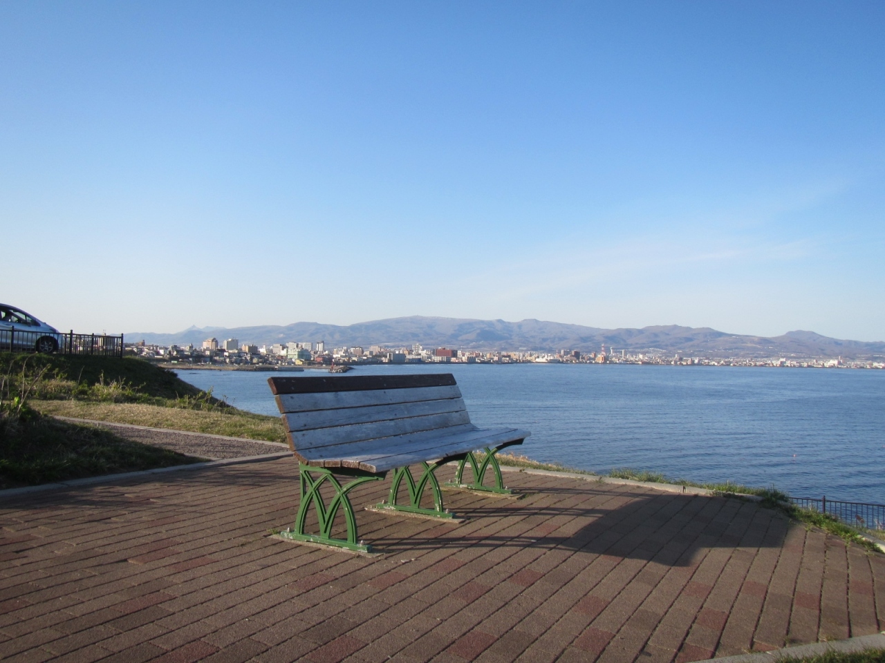 立待岬の整備された園地の一角にありますが、公衆トイレの奥の方に折り返した場所で、ちょっと目立たない場所です。