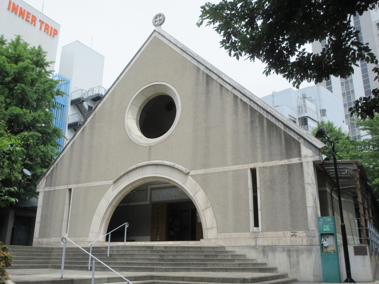 神谷町駅出口1から8分ほど歩いたところにある飯倉交差点そばの日本聖公会教会です。円形と半円形にくりぬかれたように見える白い建物です。1879年に現在地に聖堂が完成しました。聖公会の礼拝様式を知らなかったので、聖アンデレ教会のホームページを見ると礼拝の流れが初心者でもわかりやすく説明してありました。誰でも礼拝に参列できるなど、開かれた教会のイメージでした。コロナ禍で現在公開礼拝は行っていませんが、礼拝の様子は毎回配信されています。隣に建つ聖オルバン教会と共に外観だけでも興味深い建物です。