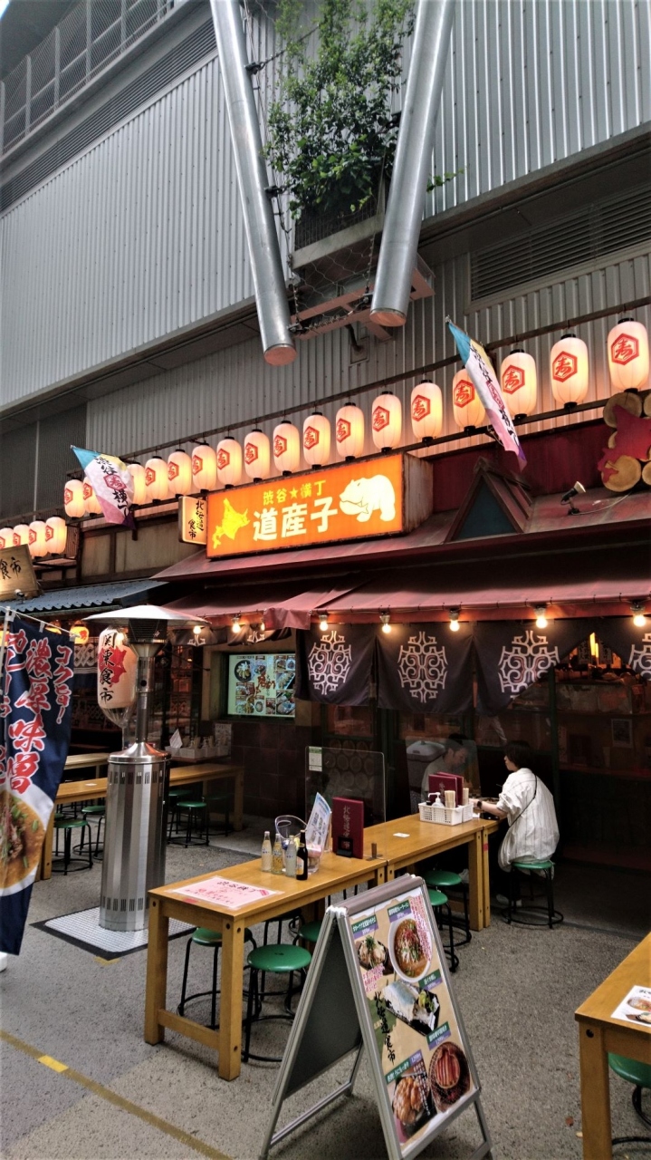 渋谷の宮下公園の手前にあたらしくできた飲食店街「渋谷横丁」の一画にある北海道料理のゾーン。ここは外国人ツーリスト向けにできた観光スポットである。緊急事態宣言でアルコール類が提供できないので、週末でも空いていた。