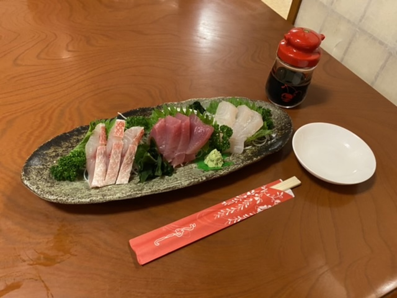 刺身盛合せ、グルクン唐揚げ、お好み焼きを肴に!