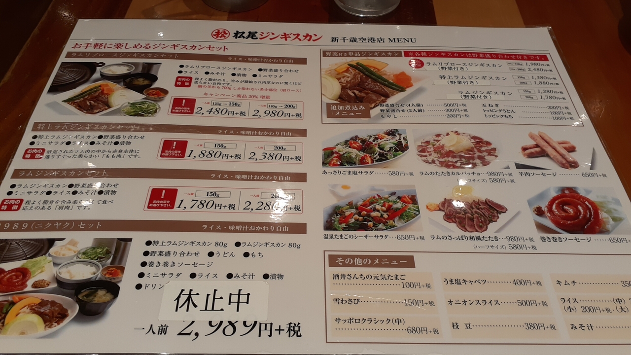 2020年9月28日のランチで利用し、当日は1,880円する特上ラムジンギスカンセットを頂きました。