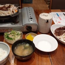 中身としてはライス・サラダ・味噌汁、そしてメインのジンギスカンといった内容でした。ただジンギスカンのお肉は通常肩肉を使用するところをこのメニューではもも肉を使用するとのことで、以前ジンギスカンセットを頂いた時の値段が1,680円だった為、僅か200円のプラスでプレミアム感を味わえるのは嬉しい限りです。
