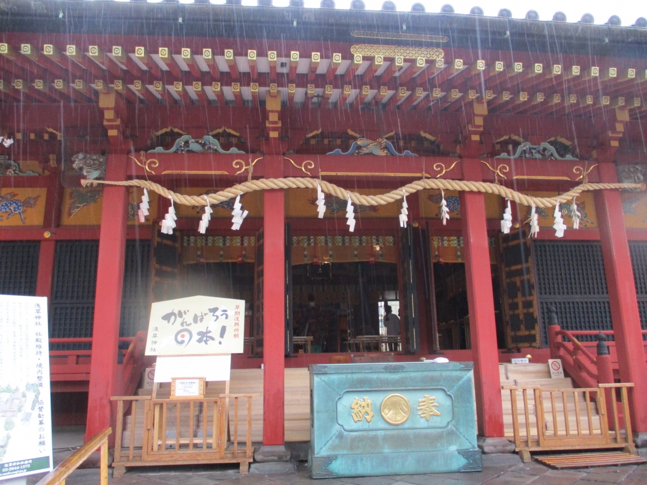 浅草寺の東にあります。慶安2年(1649)に徳川三代将軍家光が寄進した社殿が今も残る神社です。白い鳥居をくぐると広い境内があり、いろんな碑がありました。訪れた時天気が悪かったのであまり落ち着いて見れなかったのが残念です。権現造の社殿が美しいです。東京三代まつりの一つで毎年5月に開催される三社祭はこの神社の例大祭です。