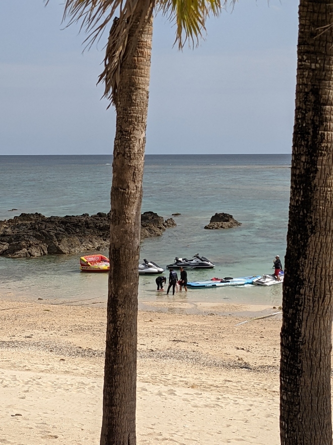 ホテルやレストラン、土産物店などが揃い、マリンアクティビティも充実しているようです。私は海に入っていませんが、通りすがりの人に聞いたところ、シュノーケルではきれいな魚も見られるし、ウミガメにも会えるみたいですよ。