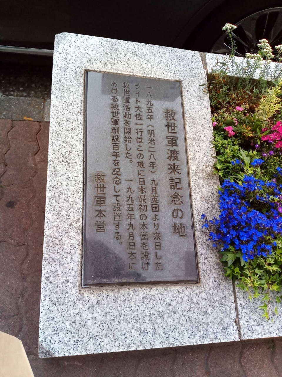 東京・新富町を散策している際に「救世軍渡来記念の地」の碑を見つけました。何度となく通っている通りにあったのですが、今まで気に留めることなく通り過ぎていたようです。