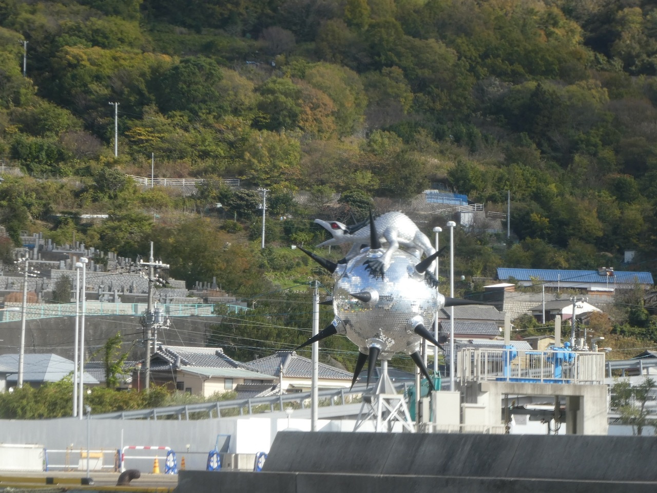 ジャンボフェリーで高松と神戸に行くことができます。それ以外の航路はないのですが、今回、にっぽん丸の停泊、上陸で利用しました。桟橋はフェリー発着のしっかりした桟橋以外に浮き桟橋もあり、通船ではそこからの上陸でした。観光地である二十四の瞳の岬の分教場や醤の郷に近いという地の利を生かした観光用の港ですね。