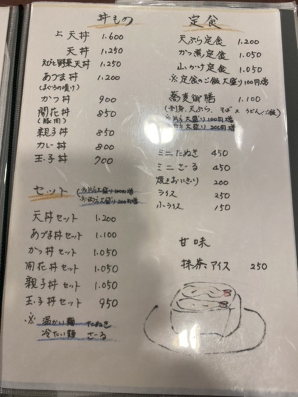 ランチで利用しました。食べたのは天丼セット1,200円!天丼にざる蕎麦です。ここの蕎麦は美味しいですよ。