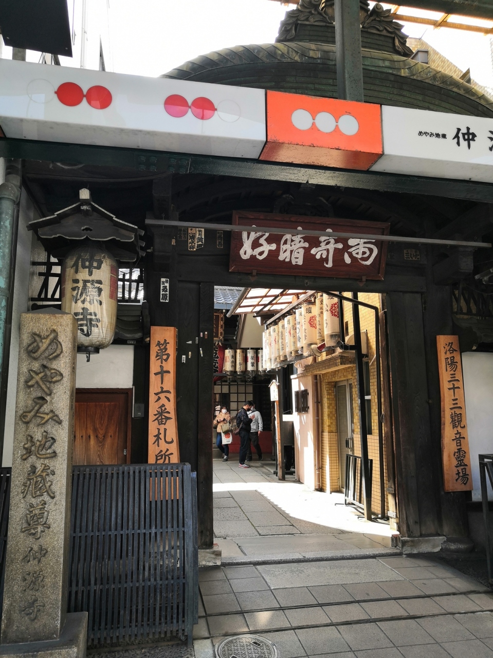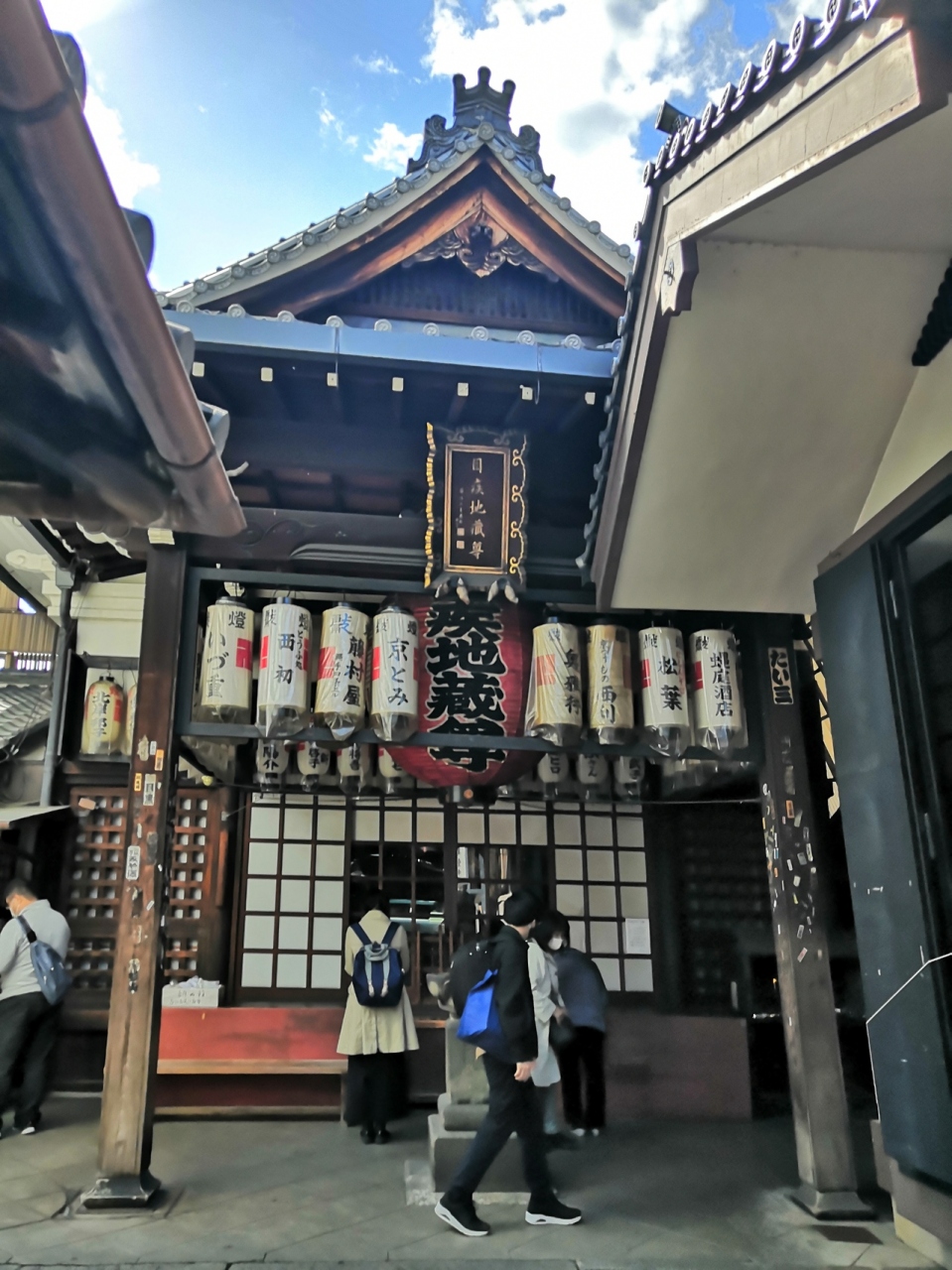 祇園商店街の西寄りにあります。あまり大きなお寺ではないので、これほど人が多くなくてもそれなりに混んでる感じがあり、観光客が多い時期なら大変な気もします。御本尊の地蔵菩薩は、目疾めやみ地蔵と呼ばれており眼の健康をお祈りさせていただきました。