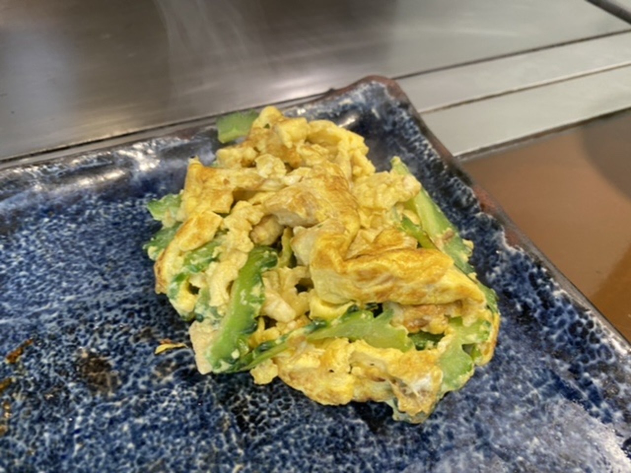 先ずは島らっきょう、サラダ!野菜を焼いてもらい、テンダーロインステーキ!ゴーヤと卵も鉄板でゴーヤチャンプル。デザートは沖縄風ぜんざい。