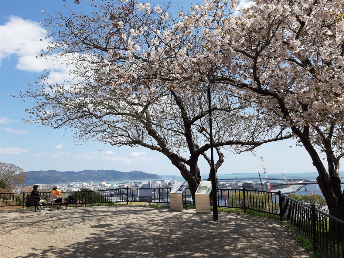 春にはサクラやツツジの花が楽しめるほか、お天気さえよければ、展望台からの旧北上川沿いの街並み~河口周辺の東日本大震災の津波被害があった地区の復興を目指している様子が一望できます。