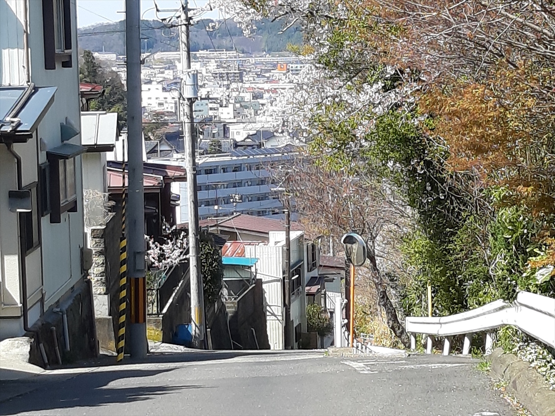 日和山は住宅地にもなっていて車でも上って行けますが、マイナーな道だと行く手が見えないほどの急坂もある点に要注意。