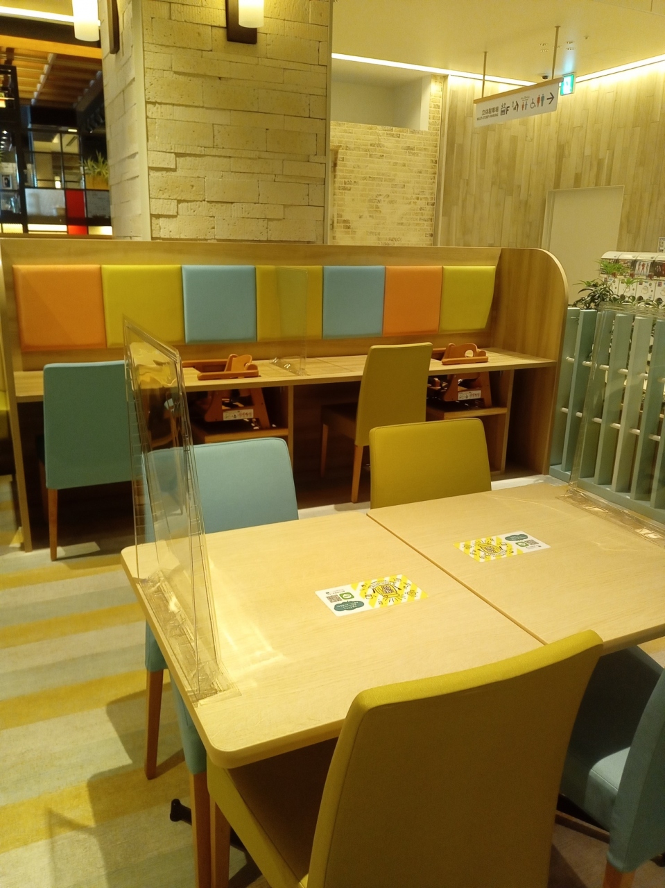 有明ガーデンのフードコートには、小さなお子さんと一緒に食事がしやすいよう、ベビーチェアにも工夫がなされています。とても優しい配慮です。