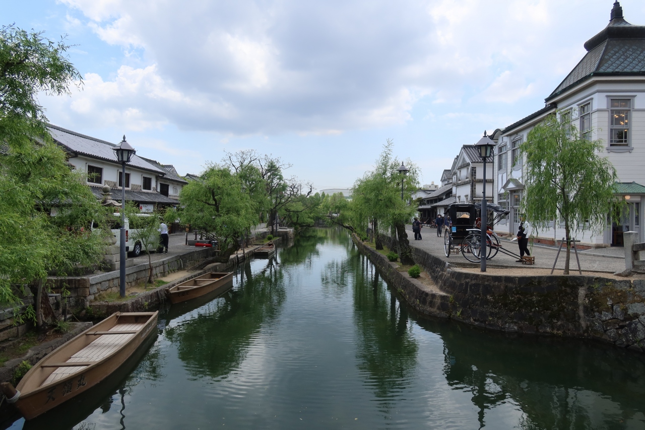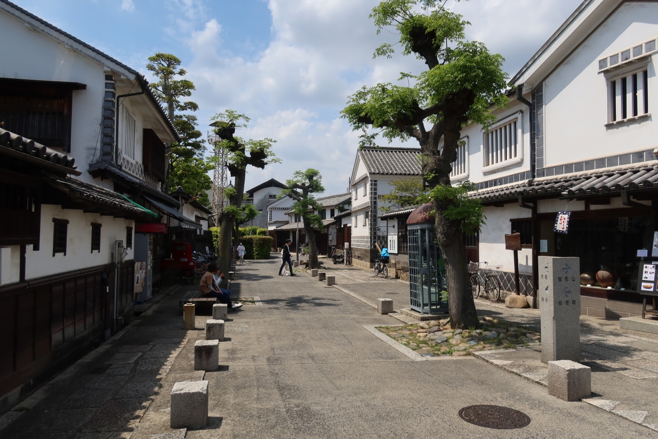 倉敷駅から南に約1.5km程行った所に倉敷美観地区があります。倉敷川沿いに柳の木が植わり、白壁の土蔵のある町屋続き、本町通り沿いには江戸時代からの古い町屋の街並みがのこり、江戸時代から大正時代のノスタルジーを感じる岡山No1の観光地です。