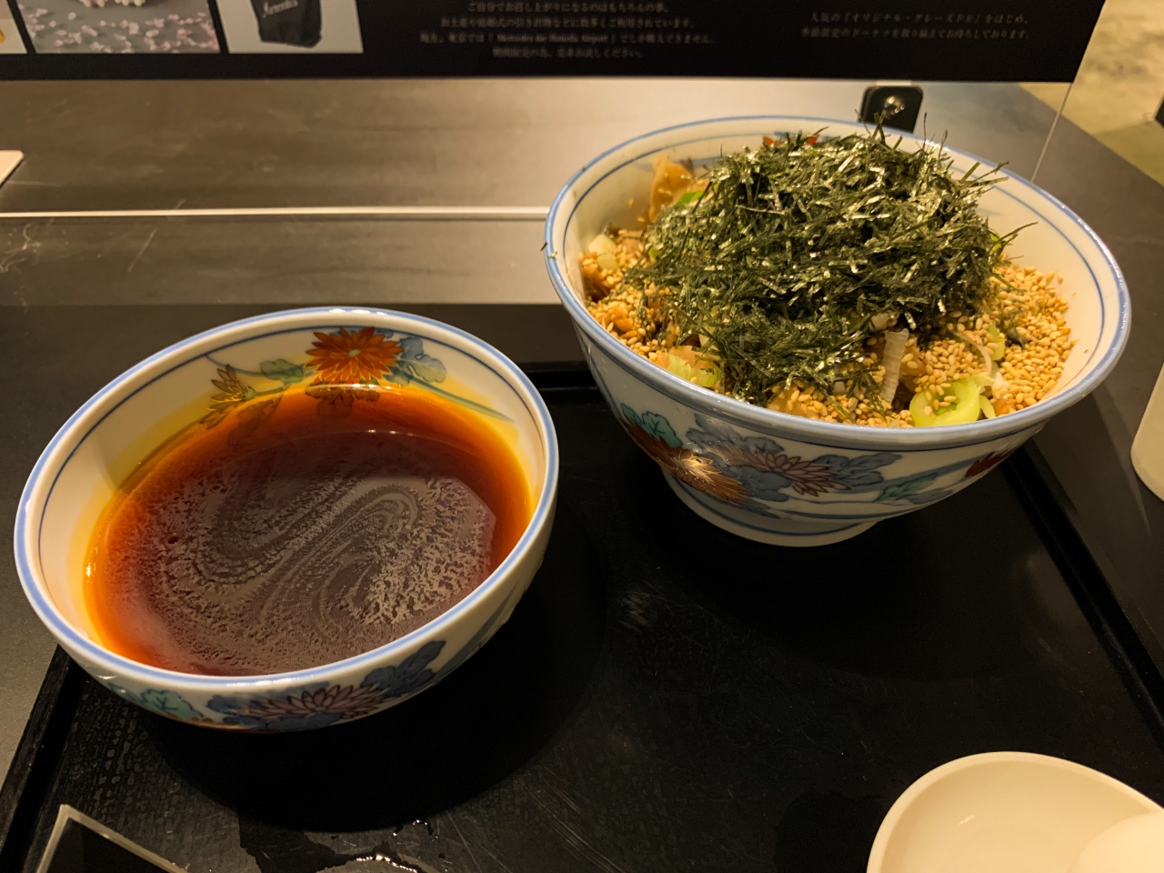 メニューの種類は少な目ですが、メインの冷やし肉そばは歯ごたえのある蕎麦とピリ辛なつけ汁の相性が良く、トッピングの半熟卵とも合います。またメンチカツもしっかりとした大きさで食べ応えあり。