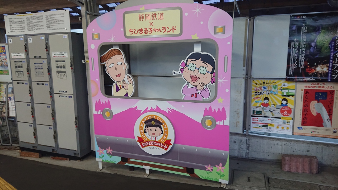 車両は自社発注のステンレス車両で、1973年から活躍してきた1000形から2016年に登場したA3000形に置き換えが進んでいます。A3000形は無塗装の車両と「shizuoka rainbow trains」と称する静岡県にちなんだ、いちご(赤)、桜エビ(ピンク)、みかん(オレンジ)など7色のデザインがあり、楽しい。WiFiも完備されるなどサービスレベルも高い。一方1000形は残り3編成となりましたが、うち1編成は、2015年から、テレビ放送25周年や新作映画公開を記念して、静鉄とちびまる子ちゃんランドがコラボした「ちびまる子ちゃんラッピング列車」となっています。車体、車内にはちびまる子ちゃんのアニメイラストで静岡の街並みや富士山、キャラクターをラッピング。つり革の一部がちびまる子ちゃんの顔になっていたり、ちびまる子ちゃんの名言集、友蔵の俳句、イラストなどでデコレーションされています。さらに車内放送も、平日は昼間時、土休日は終日、まる子ちゃん役の声優であるTARAKOさんによる音声のアナウンスが行われています。当初は1年の予定でしたが、人気で延長を繰り返しており、2021年も運行中。それぞれの列車の運行ダイヤは、静鉄のwebサイトに掲載されています。