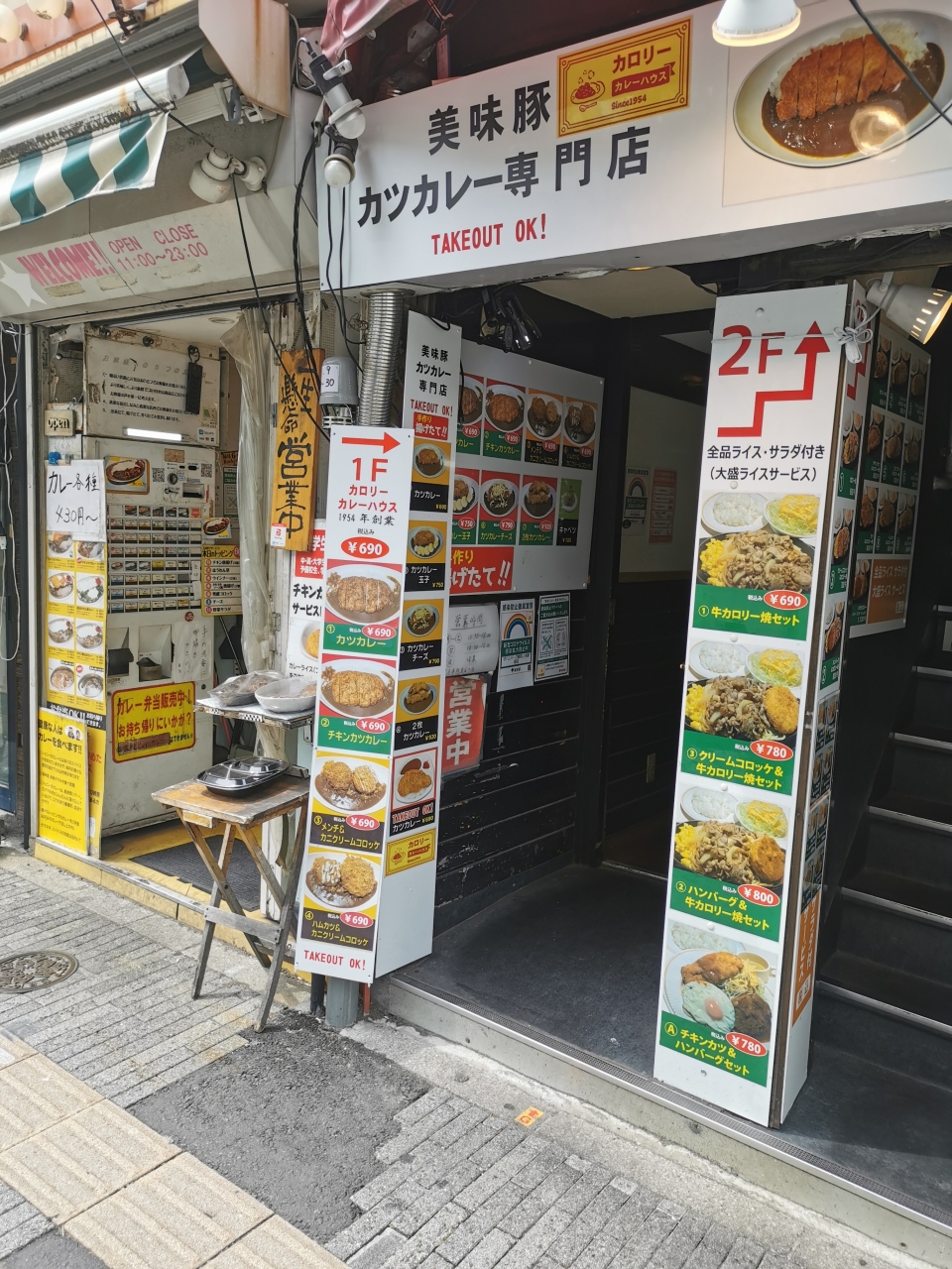 上野界隈~神田までの散歩旅。上野駅から上野恩賜公園と不忍池から湯島天満宮と神田明神に参拝してから湯島聖堂まで歩きました。御茶ノ水駅到着時点で空腹のため。キッチンカロリーに立ち寄り。1Fはカロリーカレーハウスです。お奨めはカツカレー。注文してから揚げたてのカツがサクサクで美味しいです。