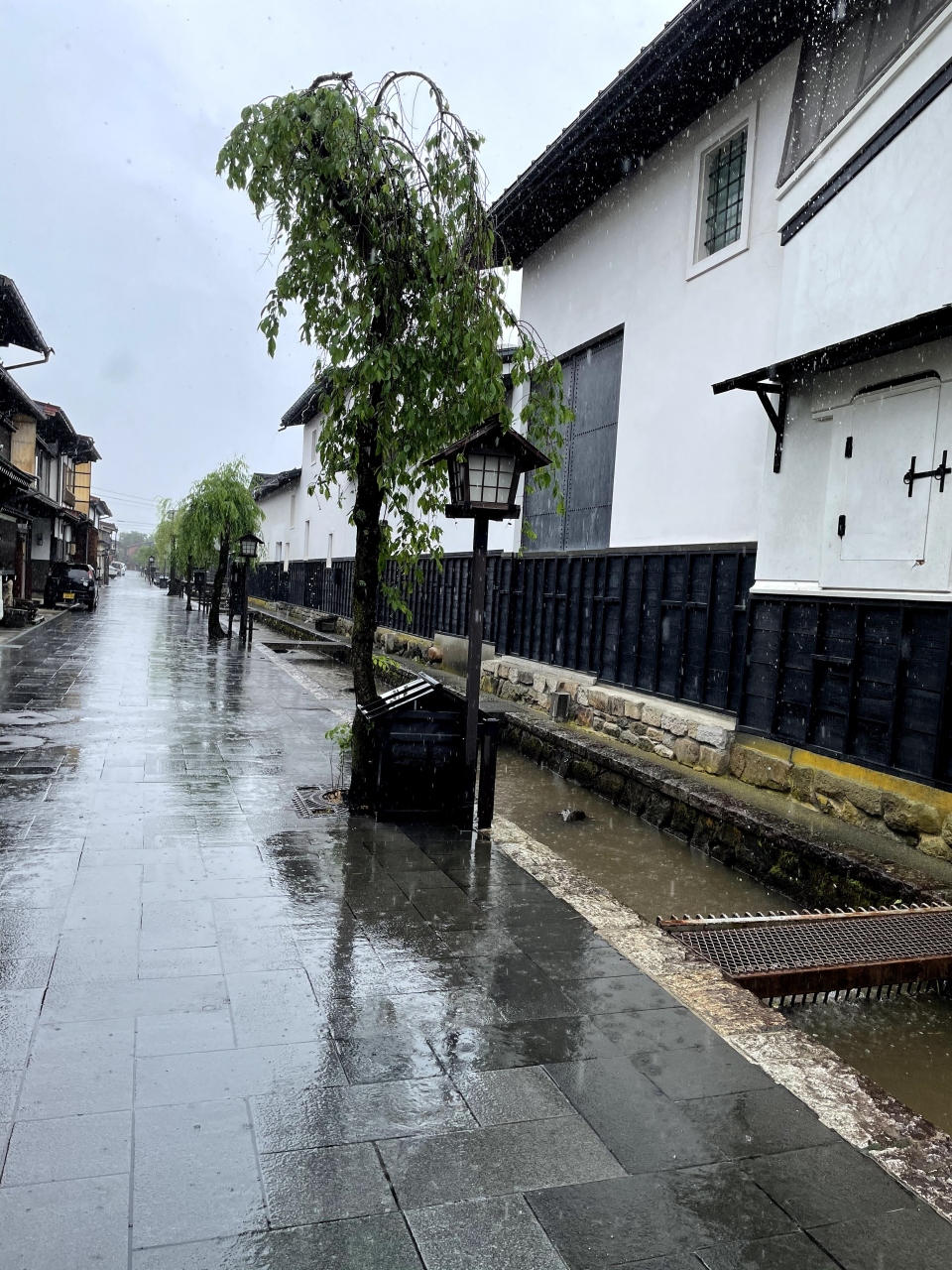 古川の町にある川沿いの遊歩道で、雨が無ければ川も綺麗で良かったと思います。