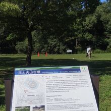 孫太夫山古墳は、仁徳天皇陵古墳の10個ぐらいある陪冢(ばいちょう)のひとつです。仁徳天皇陵古墳の拝所の南側にあり、陪冢の中でも関係の深いものと思われています。広い大仙公園の中のほうに案内板があるので、ちょっと見つけにくいかもしれません。
