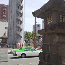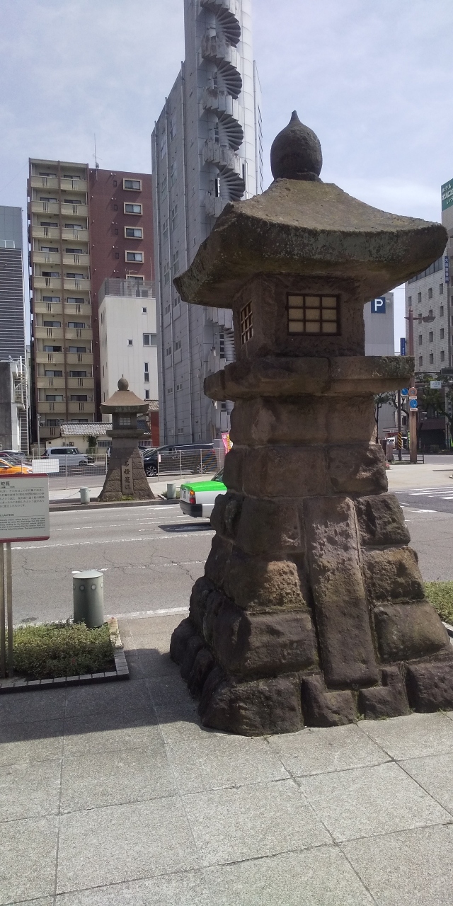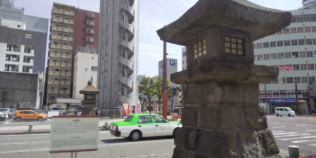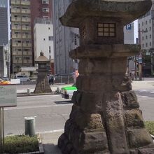 鹿児島市内の路面電車が通る「いづろ交差点」におかれている石灯籠。