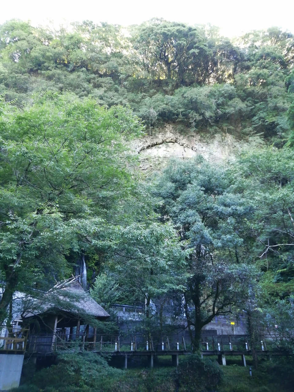 高千穂峡のメインエリアにあるおのころ池の背後に流れている、岸壁に沿って流れ落ちている滝です。一本ではなく複数流れ落ちているので、全景を見ると迫力があります。