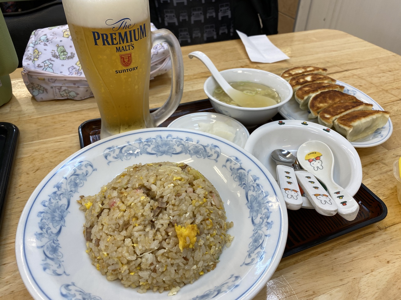 狭山市駅前にあるぎょうまんです。智光山動物園に行った際に利用しました。まん防発出の状況下にして、狭山市はまさかの対象外!!餃子とチャーハンに黄金色のビールが最高のマリアージュです。2歳児も餃子をバクバク食べていました。またどの店舗でもビールが飲めますように!