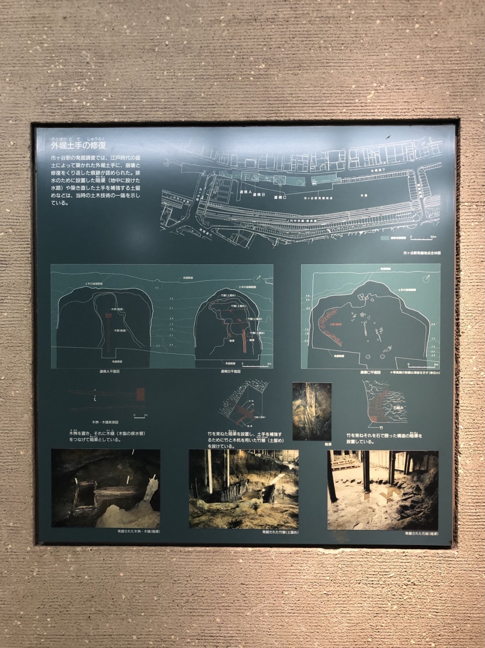 外堀土手の修復説明など、市ヶ谷という土地らしい展示で良いと思います。