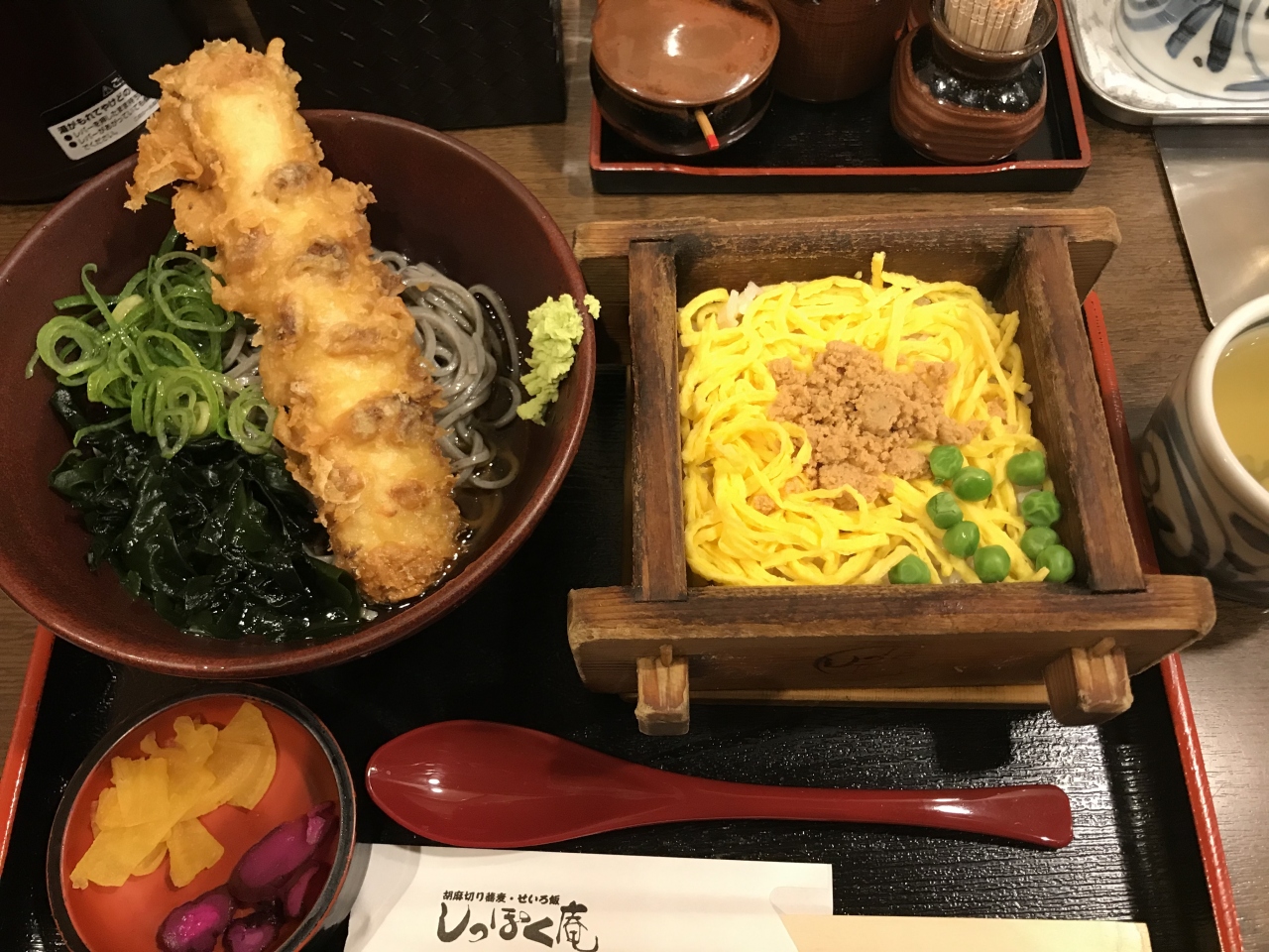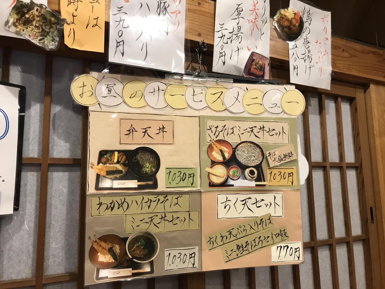 ランチに月1回程度訪れていて、ミニ鮭そぼろセイロ飯が付いた「ちく天セット」@770円や「しっぽく弁当」@930円など注文することが多いです。