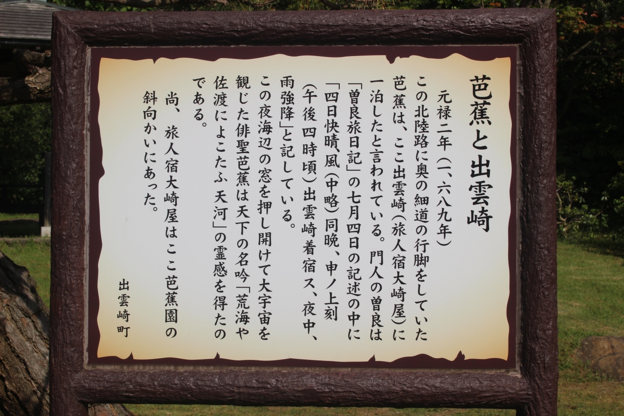松尾芭蕉は「奥の細道」の旅で、ここ出雲崎で旅籠「大崎屋」に宿泊したと伝えられます。