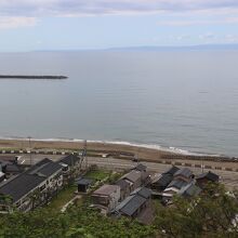 良寛記念館の隣にあります。出雲崎の街並み、日本海、佐渡が見えます