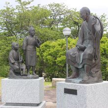 展望広場には良寛と子供たちの銅像や様々な石碑がありました。