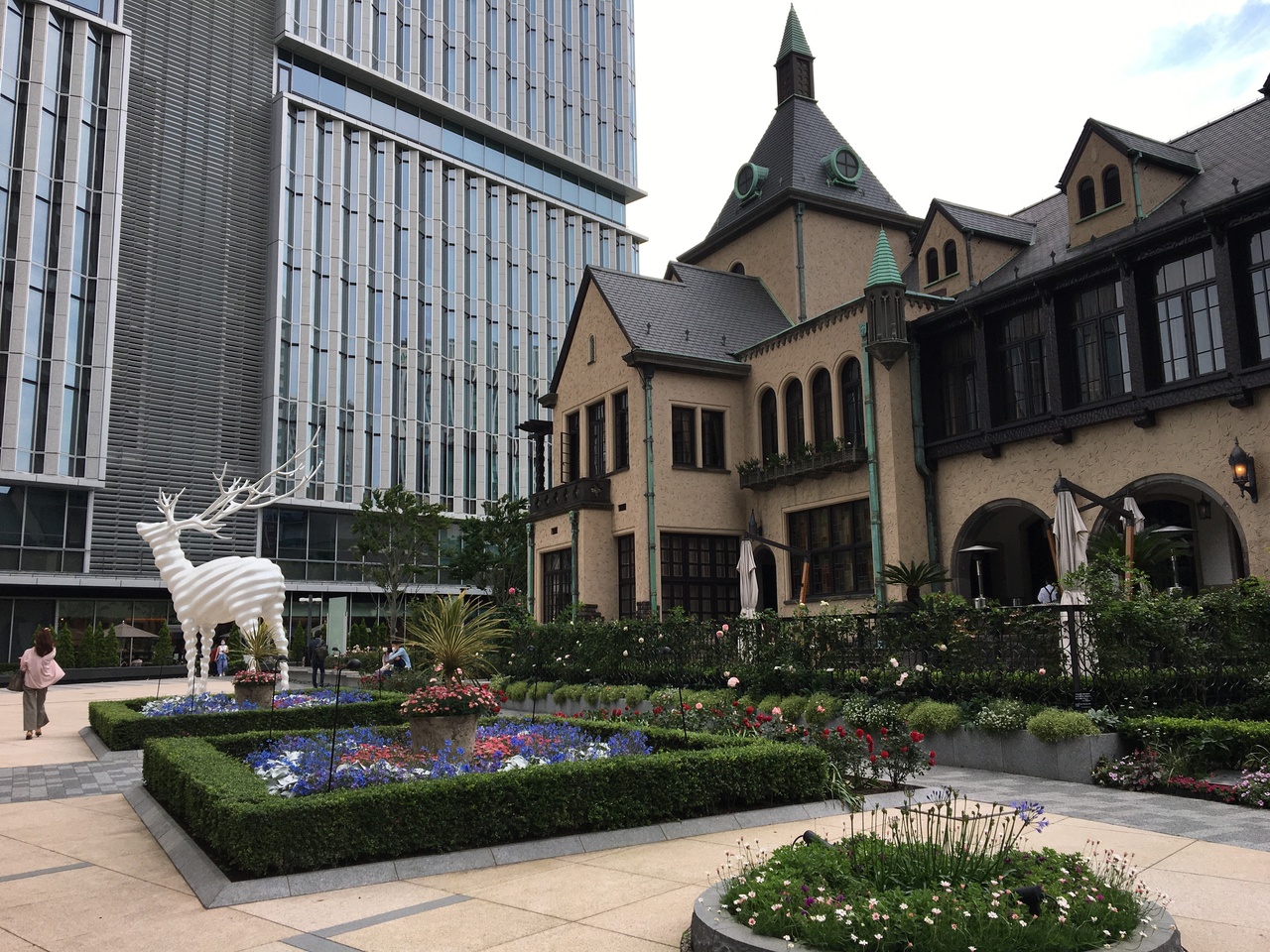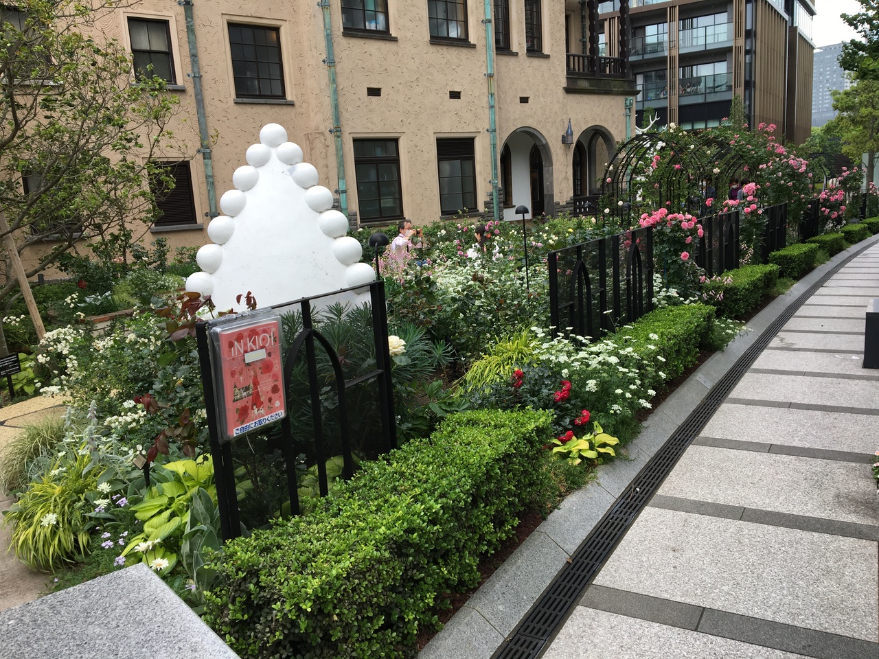 赤坂プリンスクラシックハウスを見ようと訪れたら、その周りに綺麗なバラが咲き誇っていて驚きました。クラシックハウスの裏手は小さなバラ園がありました。クラシックハウスと紀尾井タワーの間の通りを北へ進むと、綺麗に整備された公園で、その傍らはホタルなどが出てきそうな自然が残されていて、子どもたちが大勢遊んでいました。クラシックハウスの周辺は公園のようでしたが、紀尾井タワーを1階まで降りると、ビジネス街のような雰囲気でもあり、同じビルでも前後で全く印象が変わっていました。