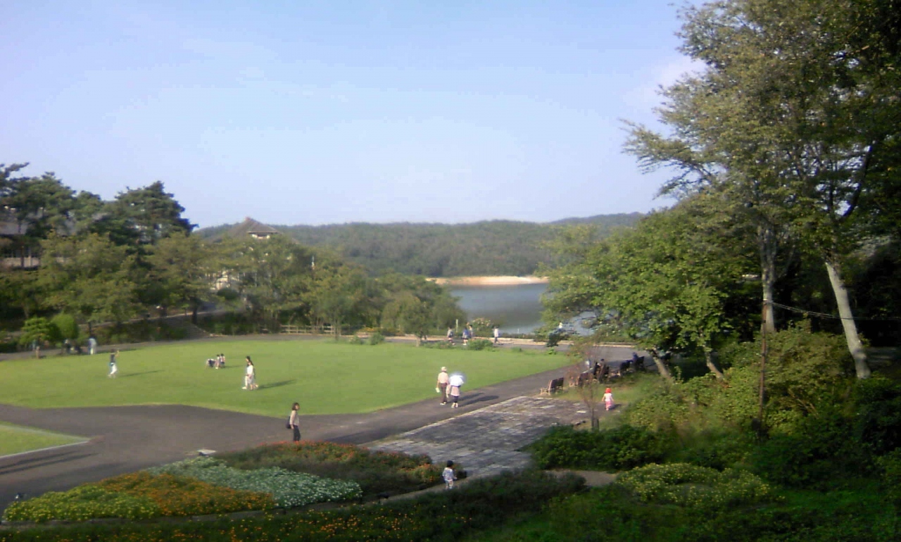 県下最大の人工湖・入鹿池に隣接し、村内からもこの池を臨むことができます。
