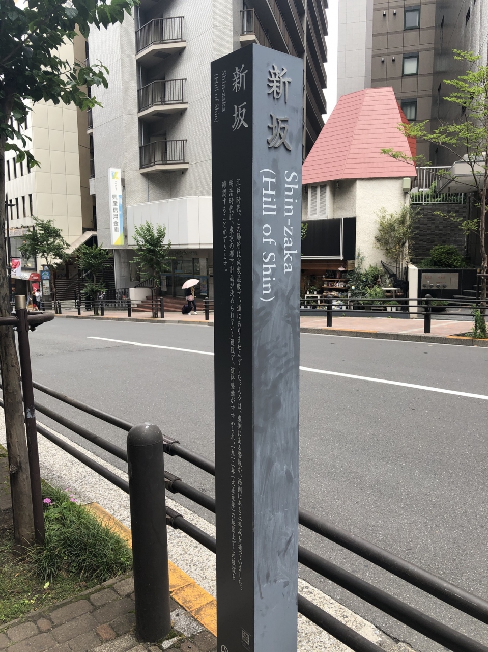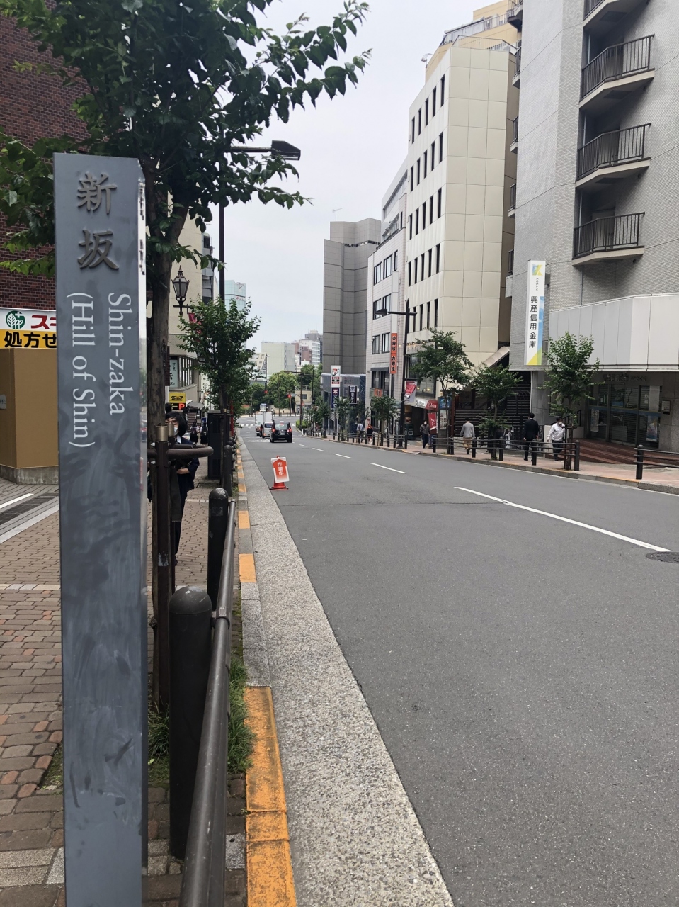 江戸時代には武家屋敷が多くてここには道がなく、明治時代に都市計画が進む中で作られたと標柱に書いてあります。