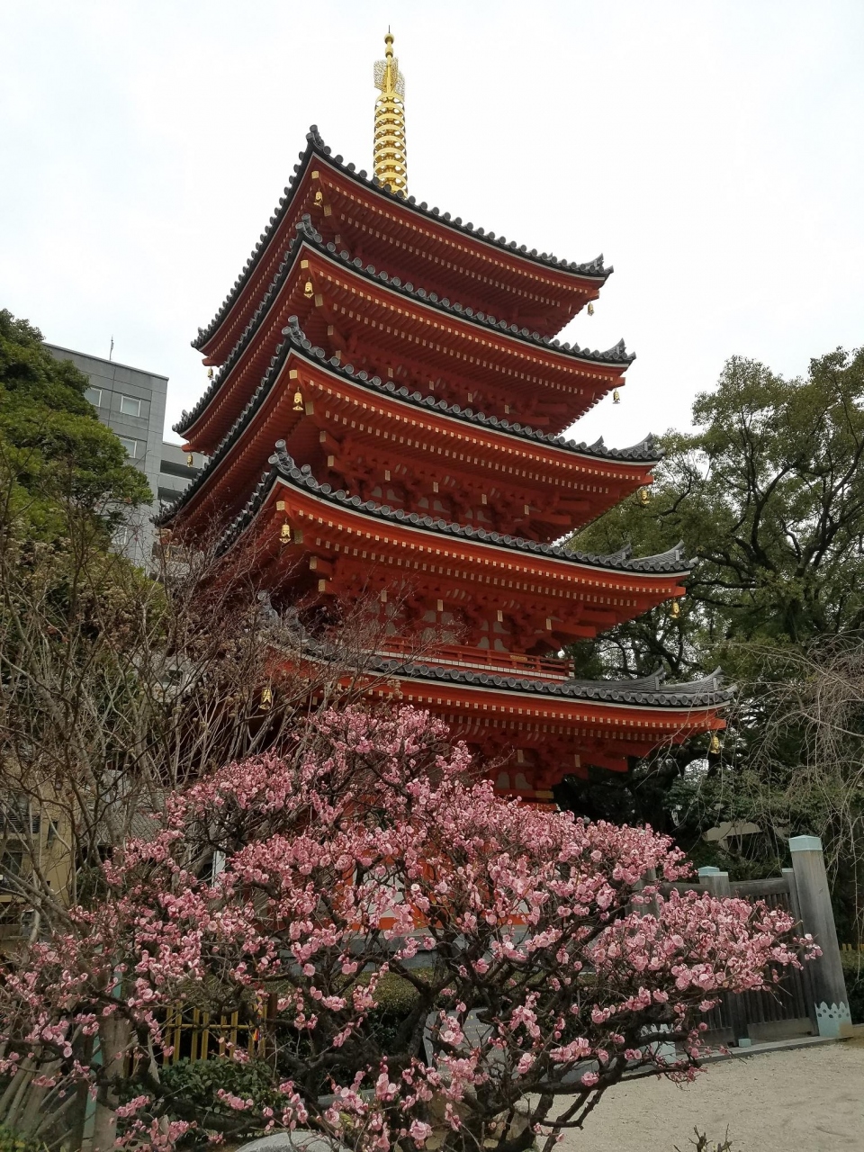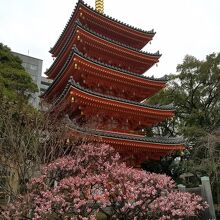東長寺の五重塔は、大博通りからも見える大きくて立派な塔です。朱色の鮮やかさが特徴、塔の頭は金ピカでかなり派手な印象で、本堂や他の建物と比べてもかなり目立ちます。それもそのはず、開創1200年を記念して2011年に新しく作られたそうです。歴史的価値はさておき現在の東長寺を代表する存在です。