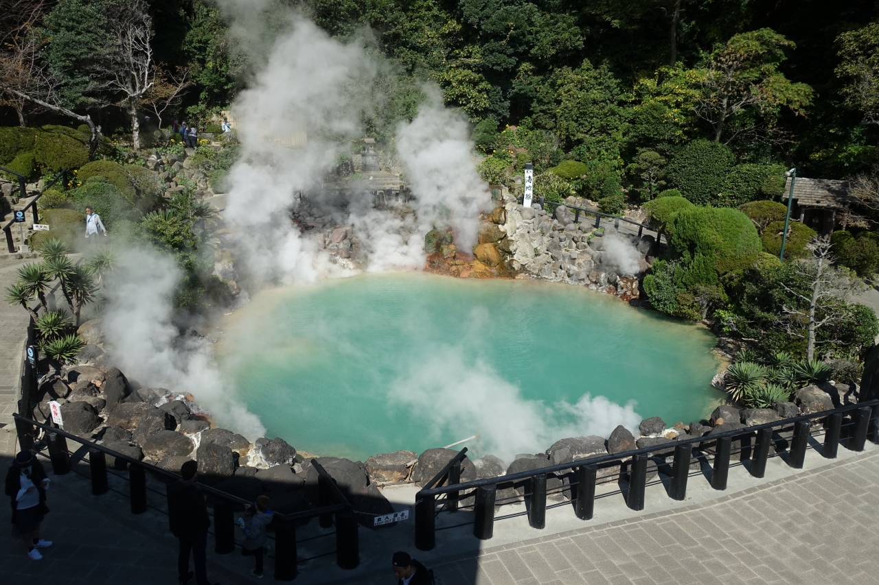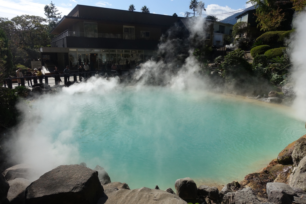 園内は思ってた以上に広く、国内外の団体さんも多く来ていて賑わっていました。海地獄はとにかくブルーの色がとってもきれい!これだけでも見る価値ありますね。それから、温泉が噴き出る勢いがすごい。湯気がもうもうとしていて自然の力を感じました。売店の2階からだと海地獄の池全体が見えておすすめです。