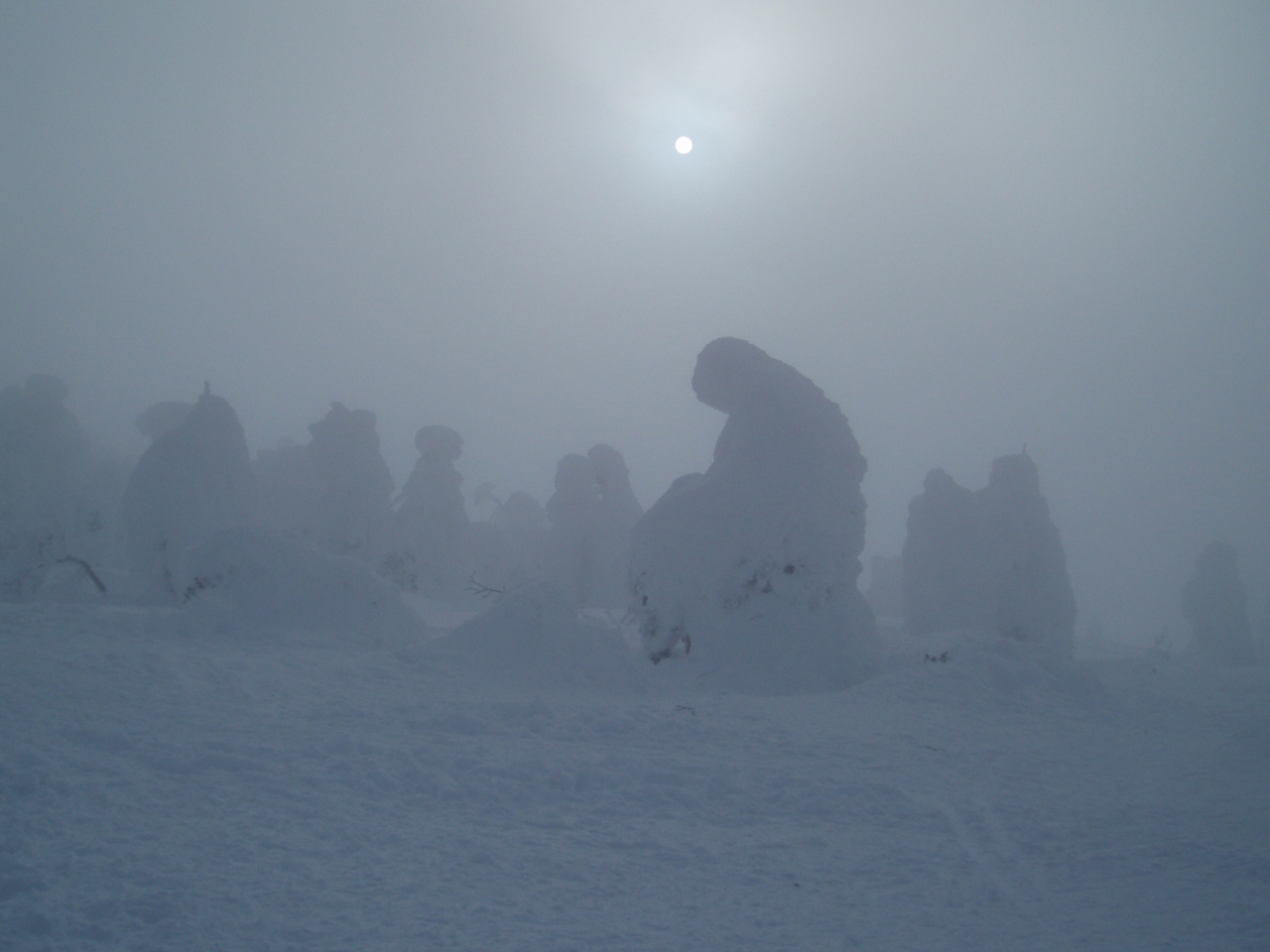 宮城県と山形県にまたがる蔵王連峰のまわりに広がる国定公園です。宮城県側の御釜が有名ですが、このときは山形県側から樹氷林を見にロープウェイで地蔵山頂に登りました。写真などでは何度も見ていた光景でしたが、目の前で実際に見てみると自然の不思議な力を肌で感じ圧倒されました。