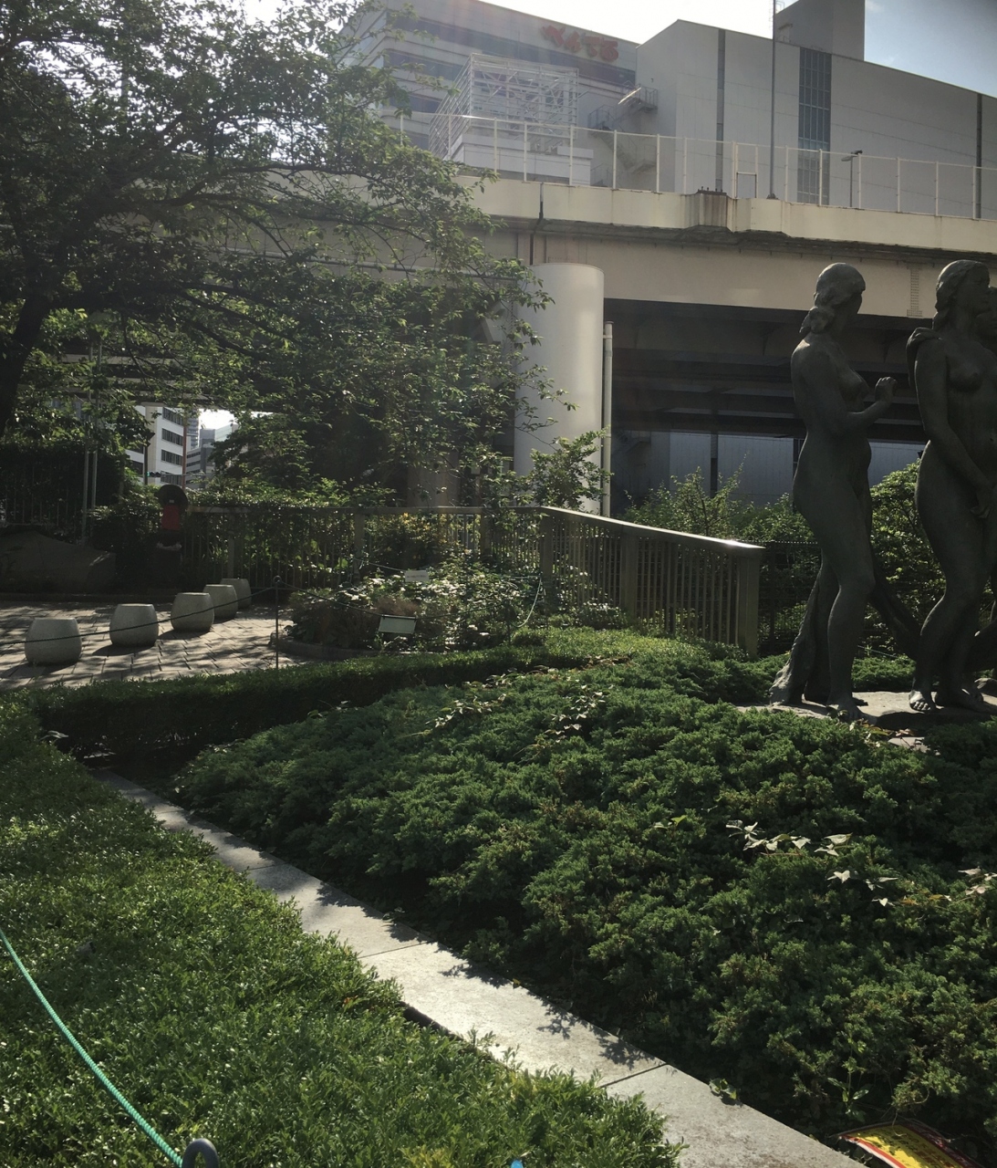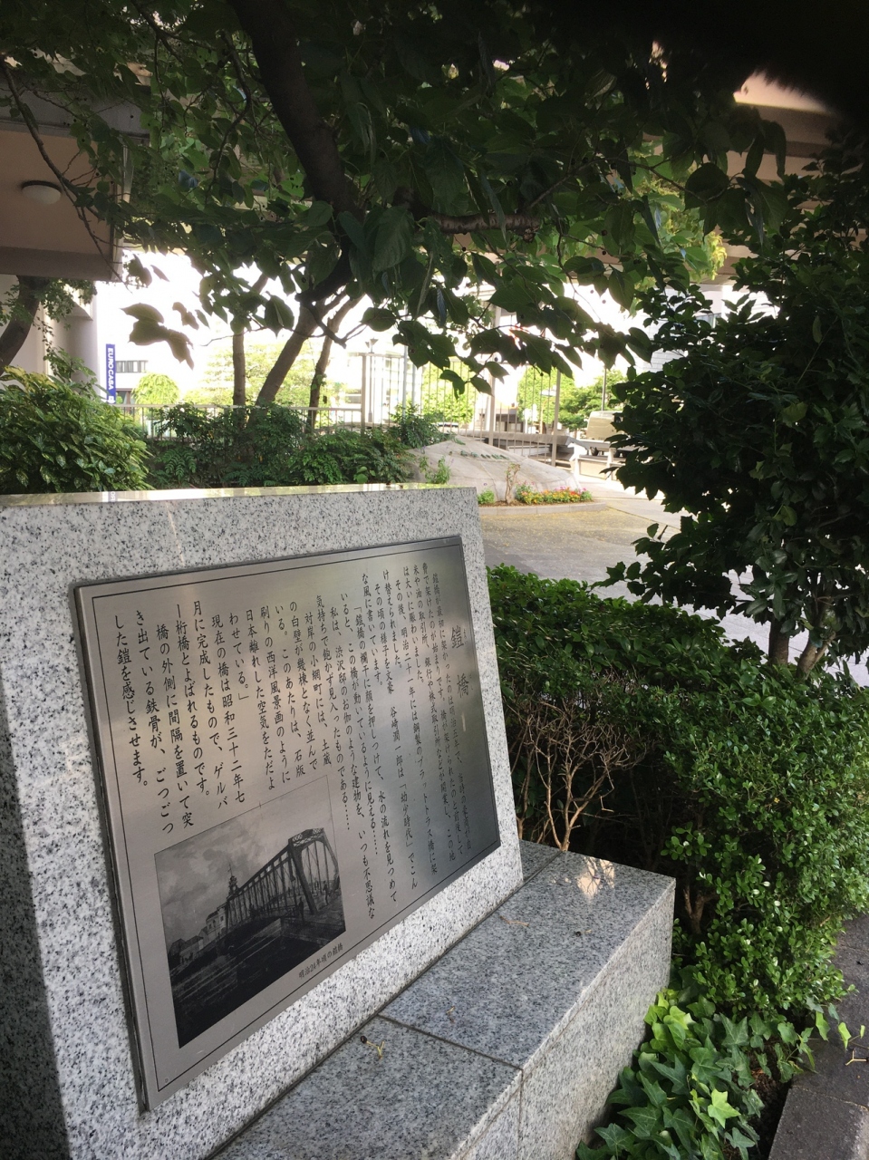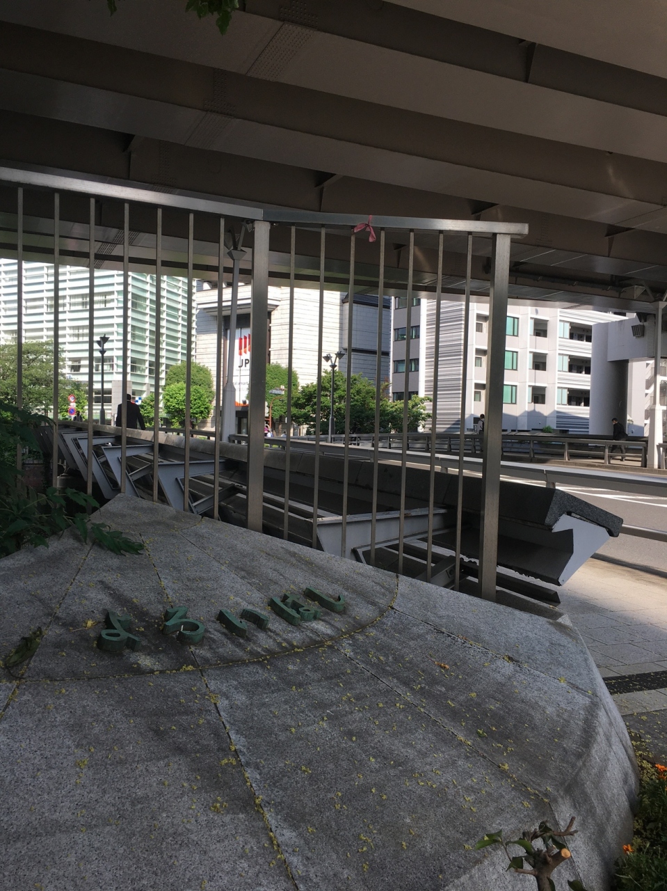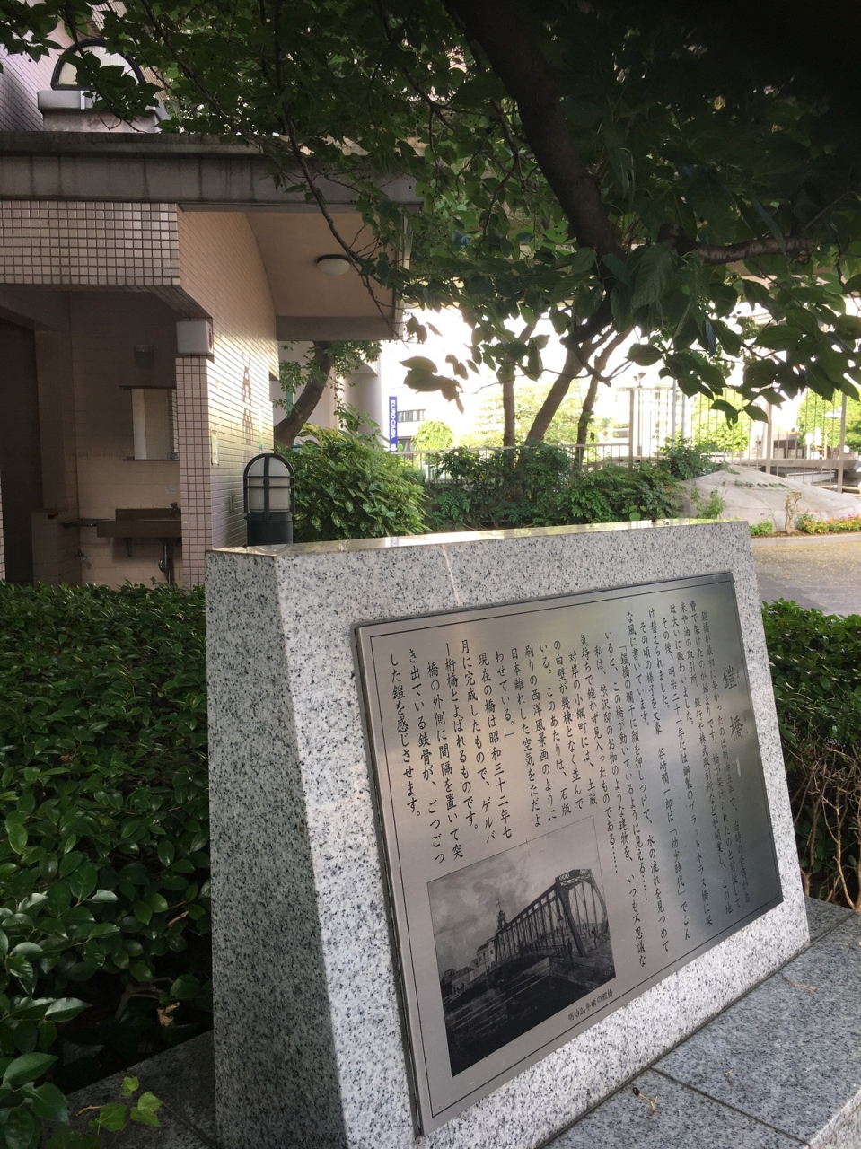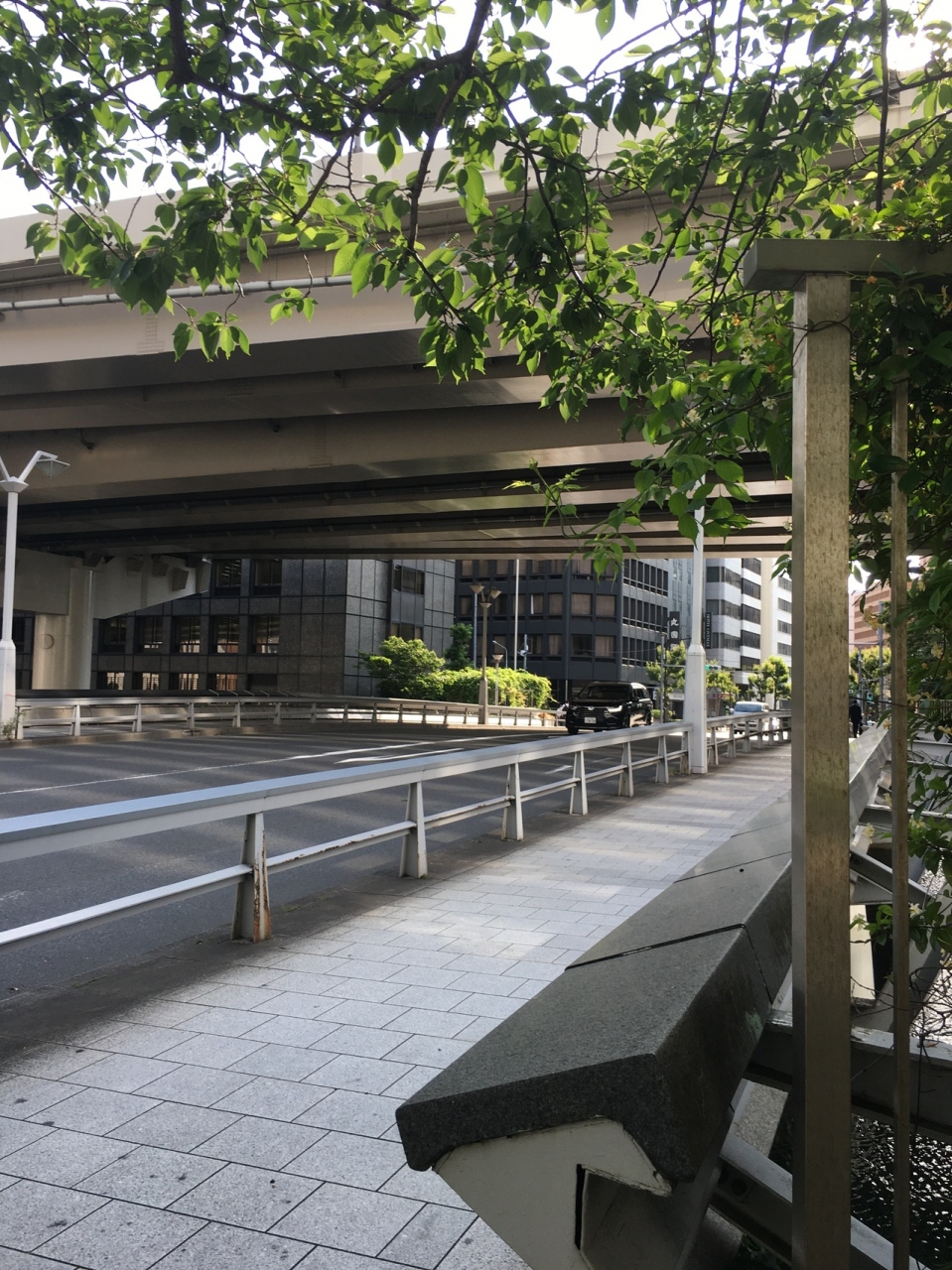 橋の上は首都高速道路でしたが、交通量は多くてない橋で、橋の下の川は濁っていました。橋の横には草木が生えたミニ公園のようになっていて小さな椅子もありました。良く見かけるような橋で何気にランプがお洒落でした。