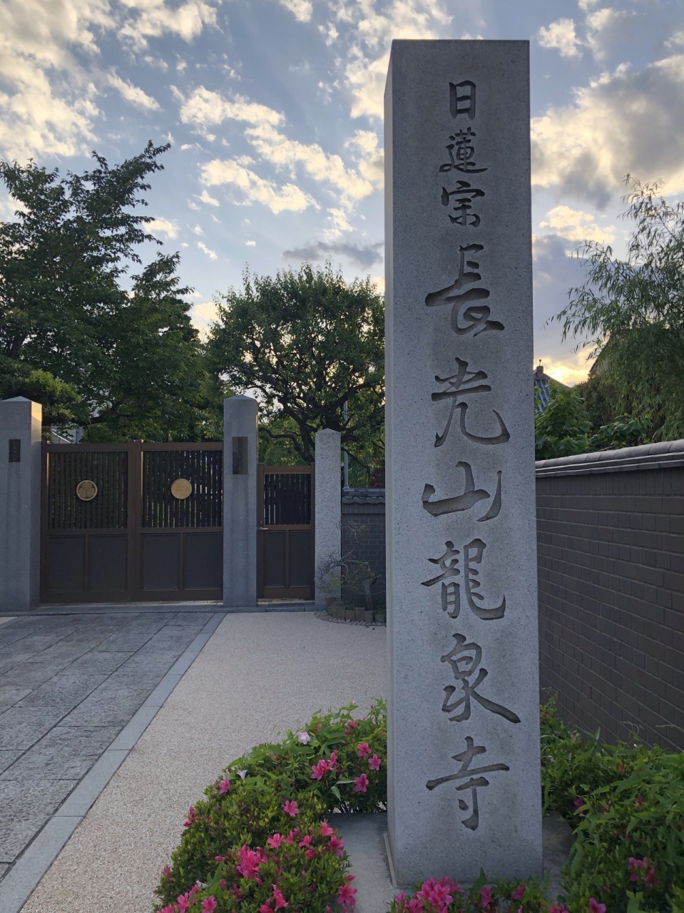 日蓮宗のお寺で、創建は元和7年(1622年)までに遡り、1700年代初頭に現在の谷中に移転してきた歴史があります。門前は広く、明るい色調の石材で造られた石碑や石畳が印象的でした。境内の一角には妙鶴観世音菩薩の祠があり、落ち着いた雰囲気が漂っていました。