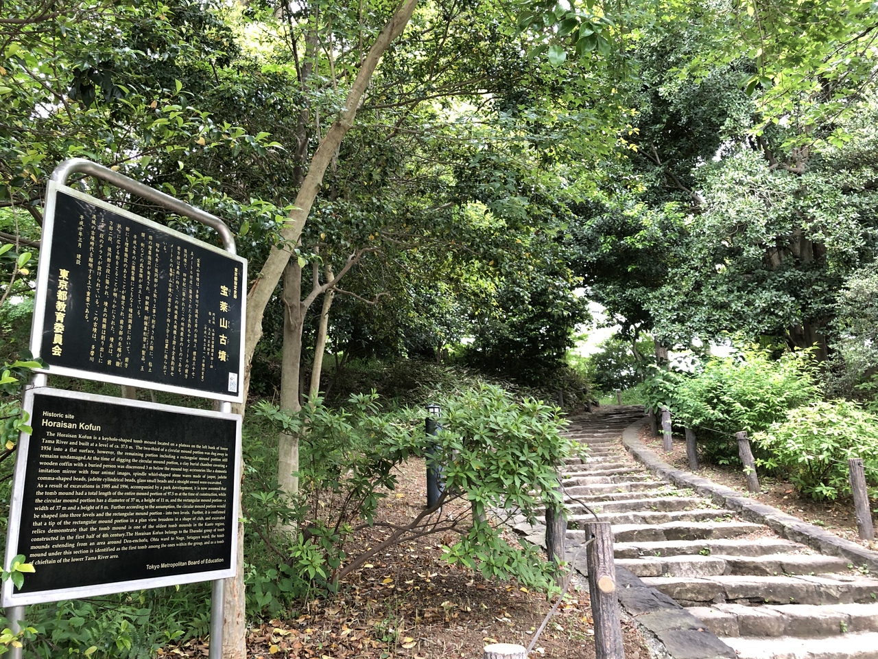全長97メートルの前方後円墳で、多摩川下流域にあり、古墳の遊歩道からは木々の間から多摩川を望むことができました。4世紀に作られたものとのことで、草木が生い茂っており、ひんやりとしていました。多摩川台公園の一角にあり、きちんと整備されており散歩に良いです。