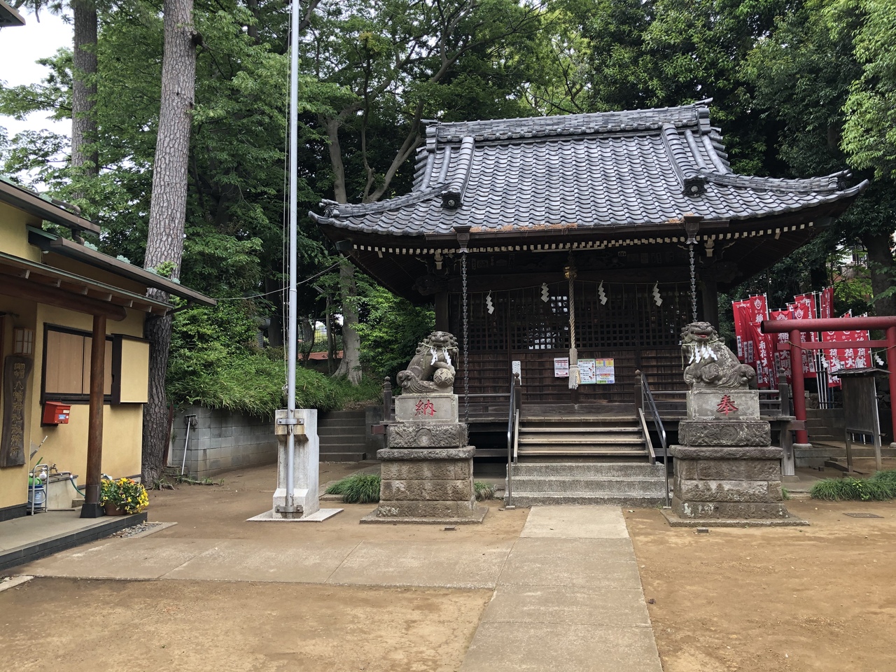 田園調布5丁目の丸子側から延びる丘の上に建つ神社で、田園調布の守護とも言ってよいでしょう。本殿に向かって右隣りには赤い幟が数十本立っており、聖域であるという雰囲気がありました。左手には社務所がありましたが、普段は開いてはいないようでした。