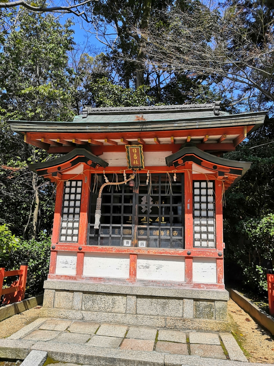 八坂神社の末社の一つです。比叡山の麓にある日吉大社が都の表鬼門(北東)にあり、都の魔除・災難除を祈る社としての信仰がありますが、こちらもちゃんと本殿の北東側にあります。ただ、意味合いはあっても建物自体は小さく、見どころ感はないです。