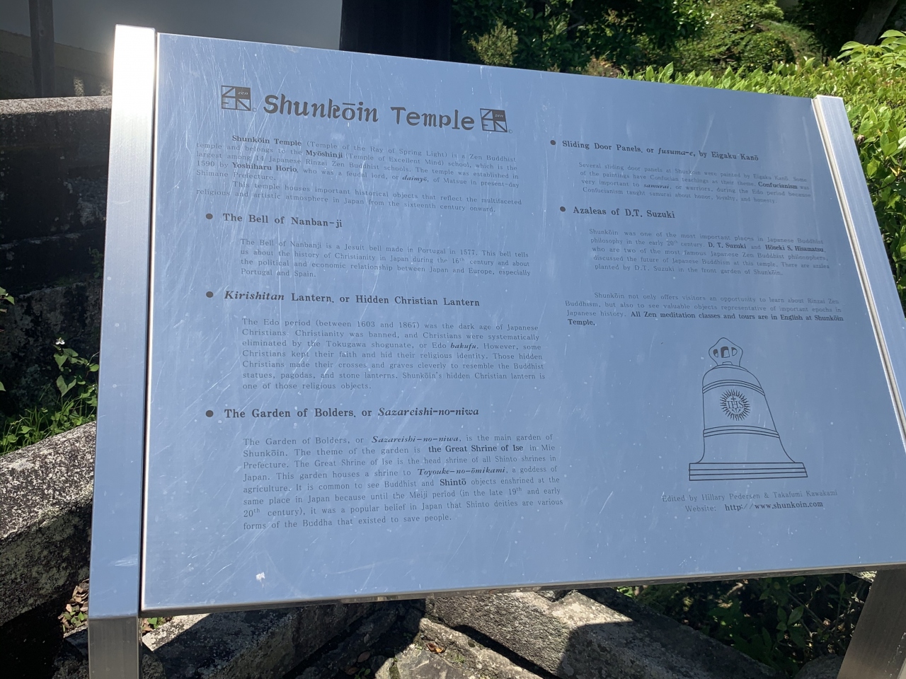 方丈東にある 銅鐘(重要文化財)は イエズス会の紋章が 鋳出されたヨーロッパ風の鐘で、