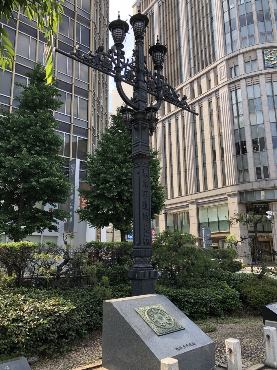 日本橋のたもとに立つ碑で、ここを中心に日本の道路標識での距離が算出されています。ここから鹿児島市や大阪市まではどれぐらいの距離等と書かれており、興味深く拝見しました。日本橋に来た際には立ち寄ってみてください。いつも何気なく見ている標識にさらに愛着がわくと思います。