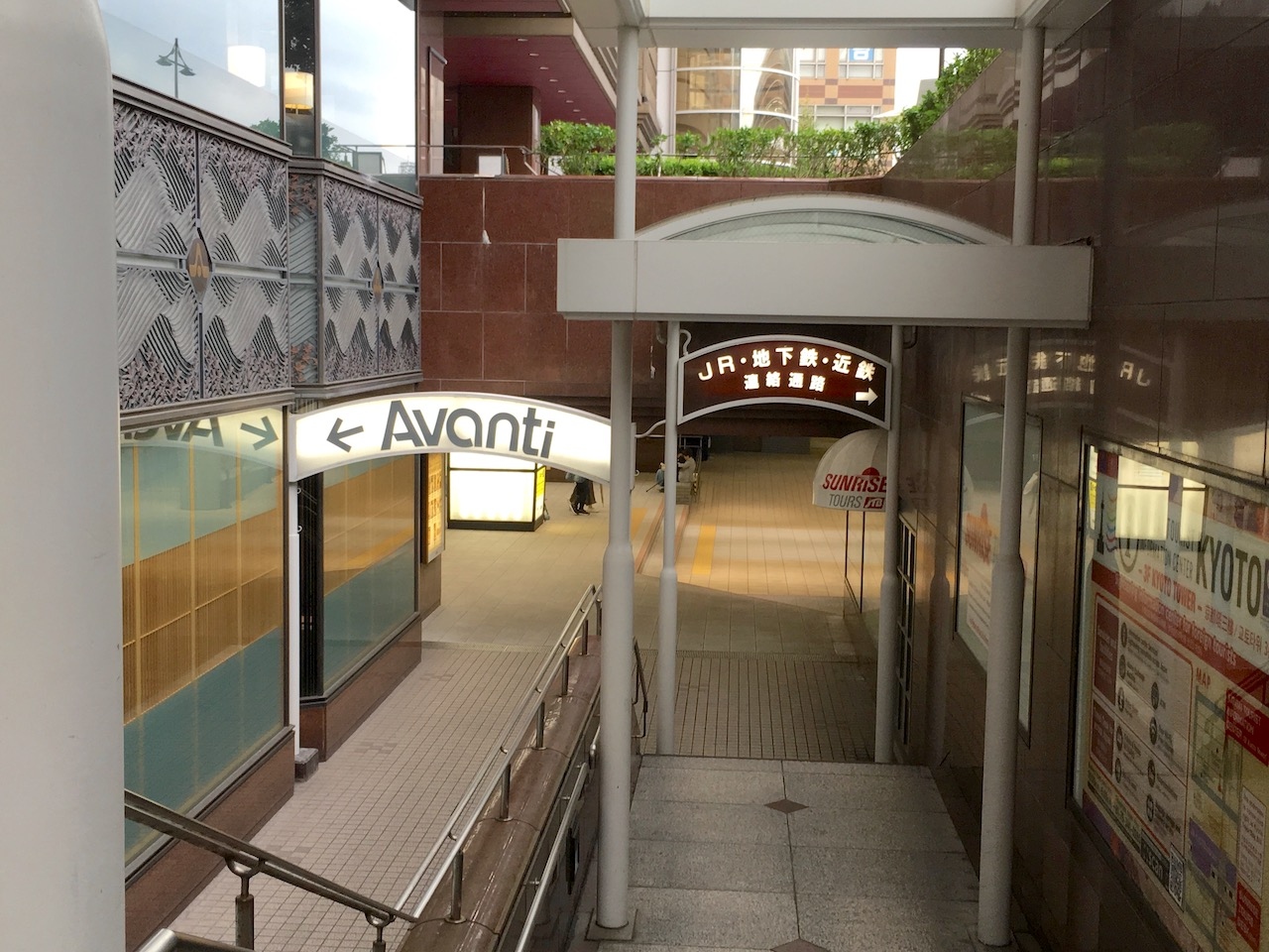 地下で京都駅と直結していて、八条口から地下通路を通っていくと、地下1階のエントランスに着きます。