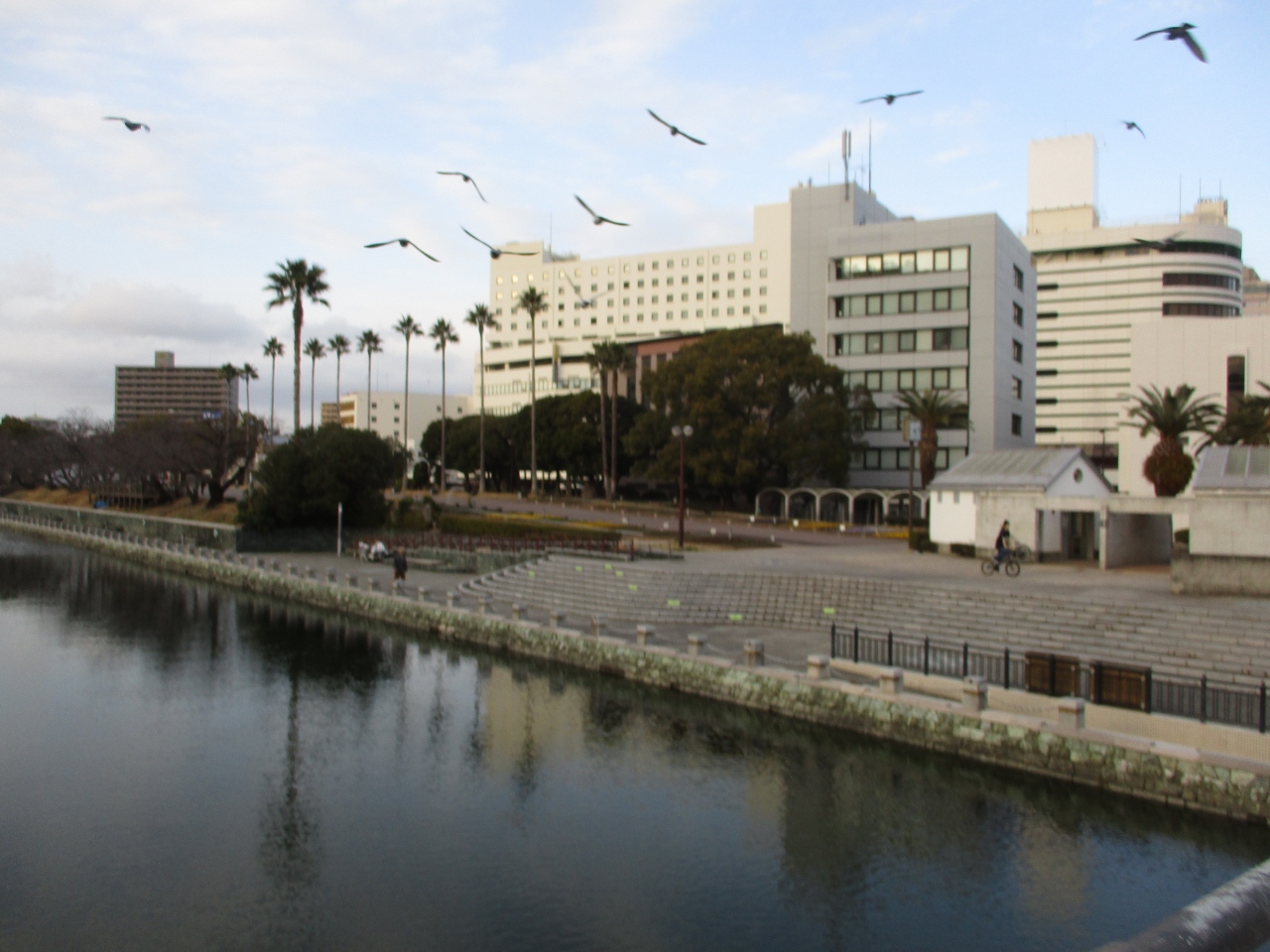 徳島は国土交通省の水の郷百選にも選ばれた水の街でした。JR徳島駅近くには川が流れており、新町川水際公園として整備されていました。昼間は湧水、滝、噴水などの水を芸術的に見せてくれていました。水際公園の対岸には木の材質で造られたしんまちボードウォークが設置されていました。
